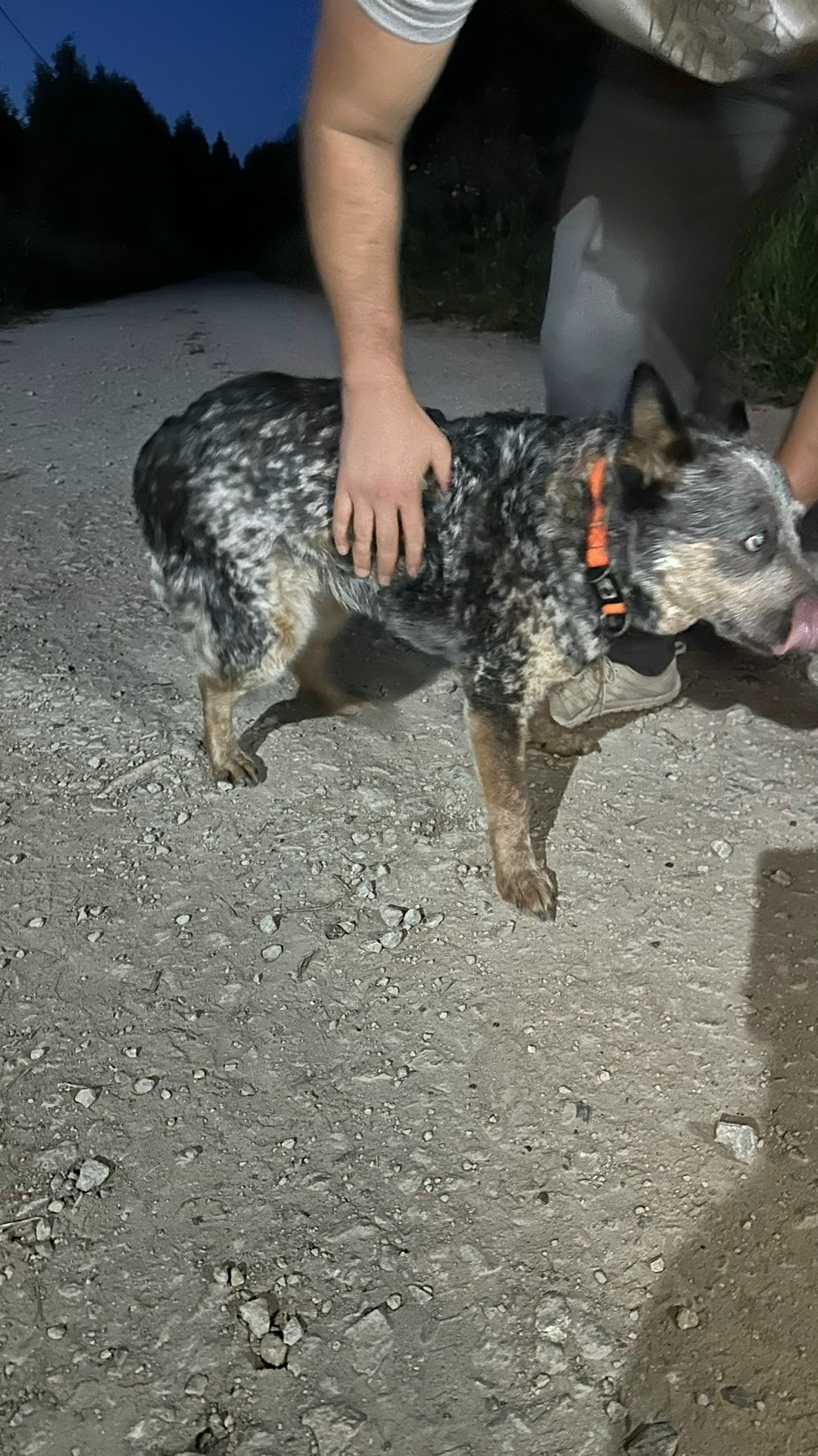 Найдена собака в деревне головизнины/суворовы. Бегала недалеко от трассы и мусорки кидалась под машины. старая, похоже слепая, очень ухоженная, рыжий ошейник
