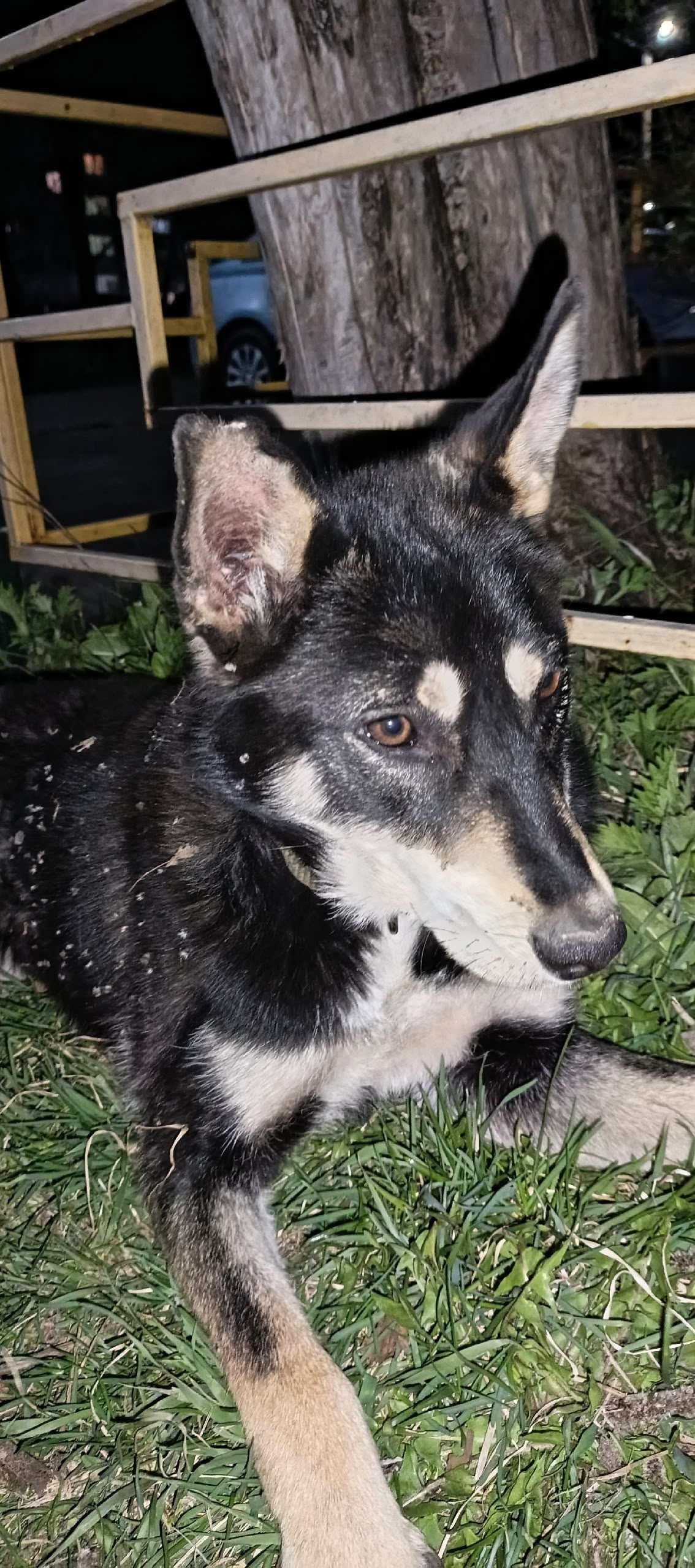 Бегает собака девочка с ошейником может есть хозяева заберите. Поселок Алтыново.