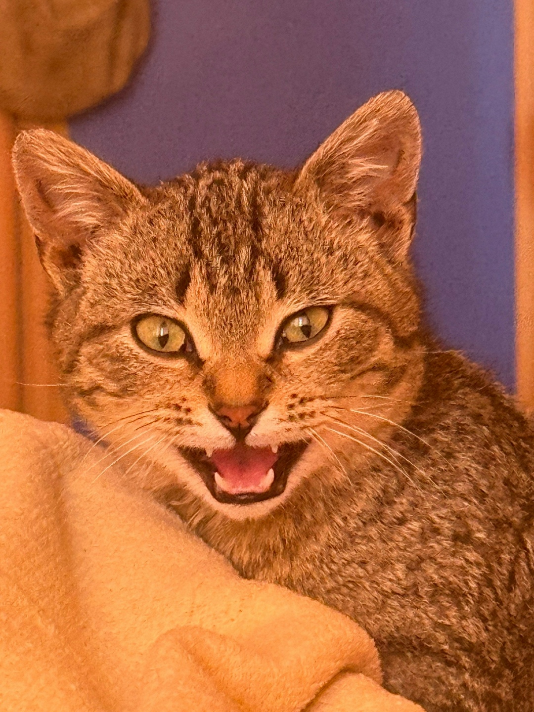 К сожалению, оставить у себя не можем — дома уже есть старый кот, и он его не принимает.