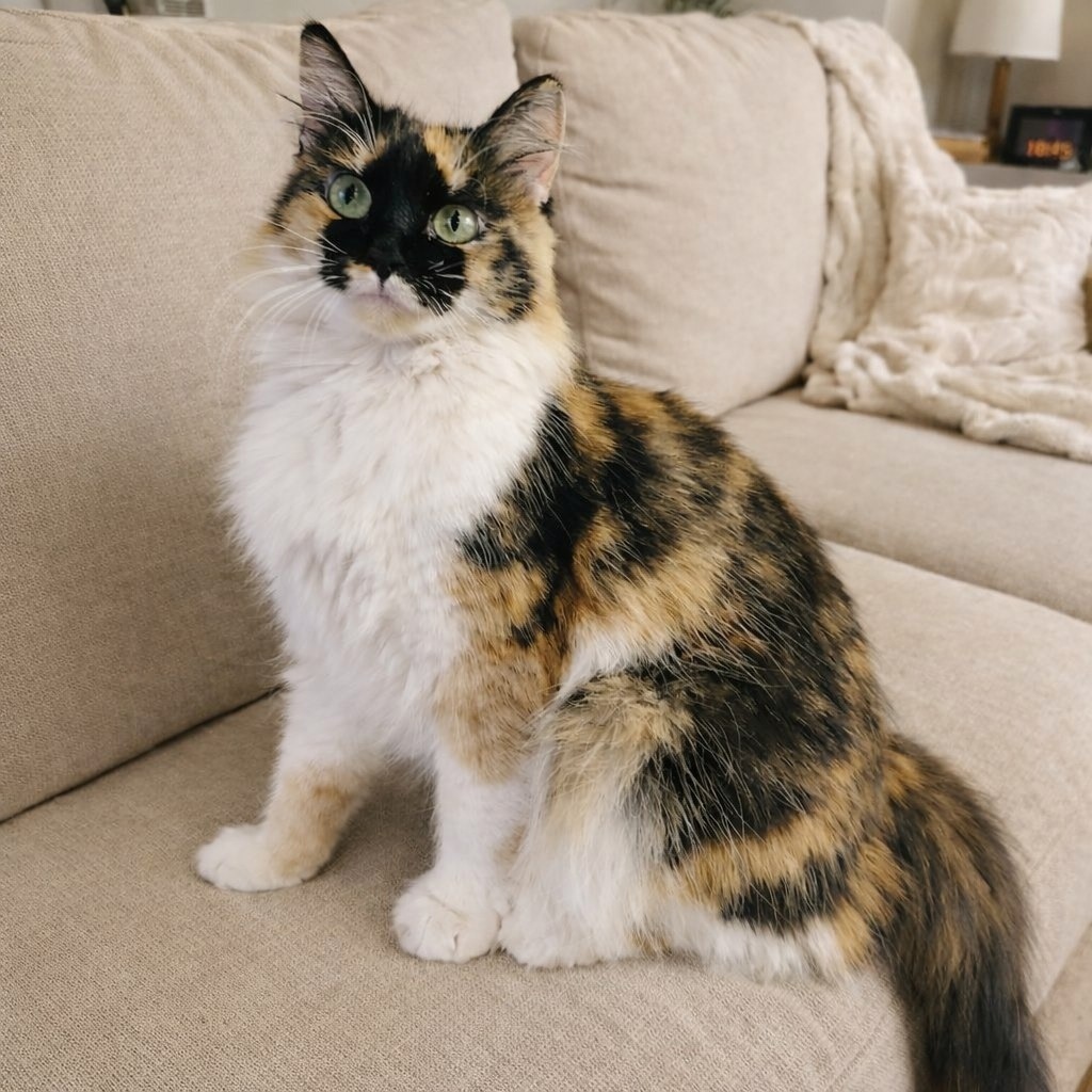 Кошечка необыкновенно хороша собой и абсолютно беспроблемная, что б вот так взять и безжалостно выкинуть её. Сейчас она стерилизована, корректировать что-либо не пришлось: всё хорошо и с лотком и с поведением.