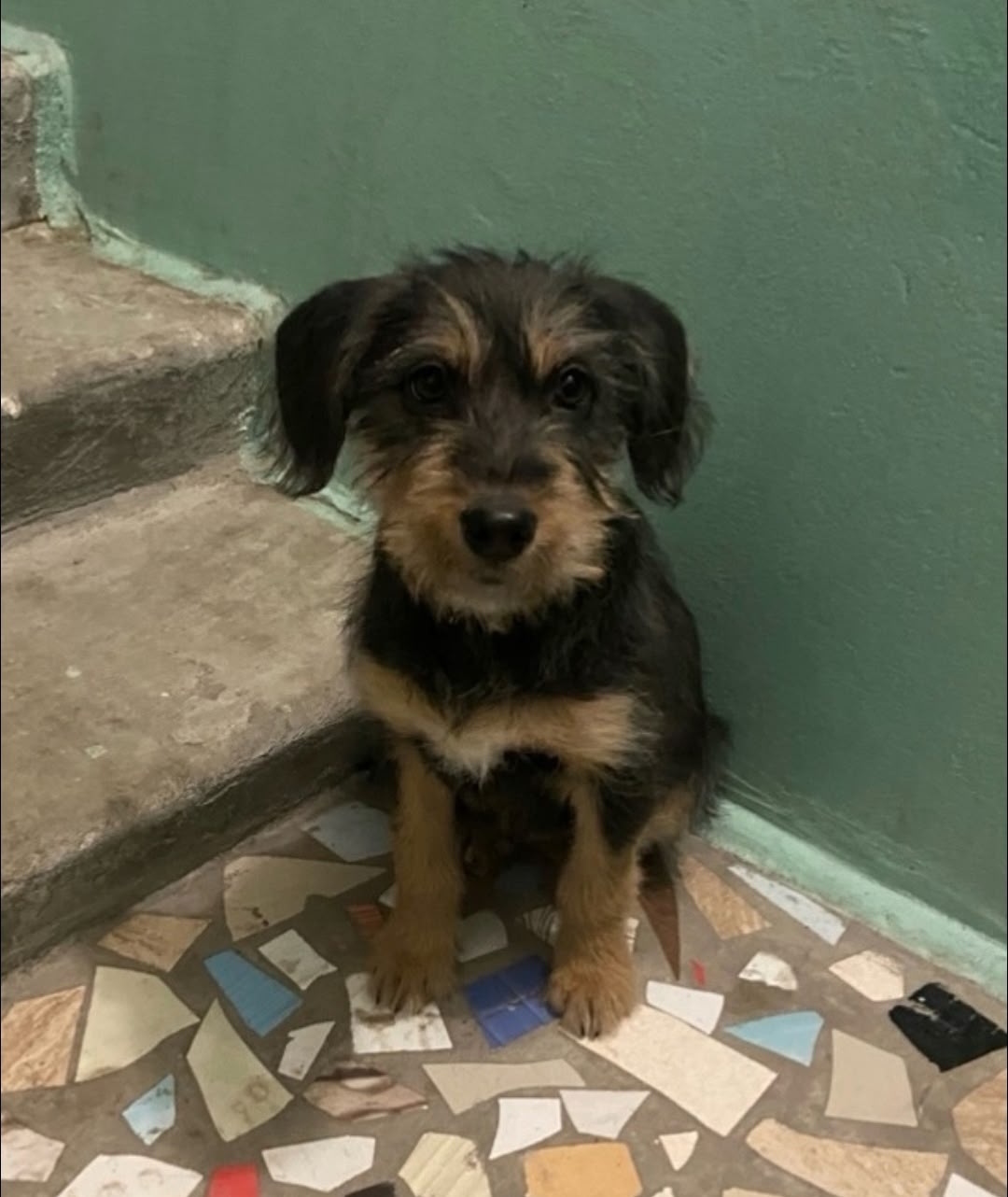 На время морозов эта маленькая девочка поселилась в подъезде. Конечно же это ненадолго. Но сейчас хоть какое-то укрытие и тепло. Неравнодушные люди кормят, стараются убирать и даже выгуливать, но недовольных тоже много.