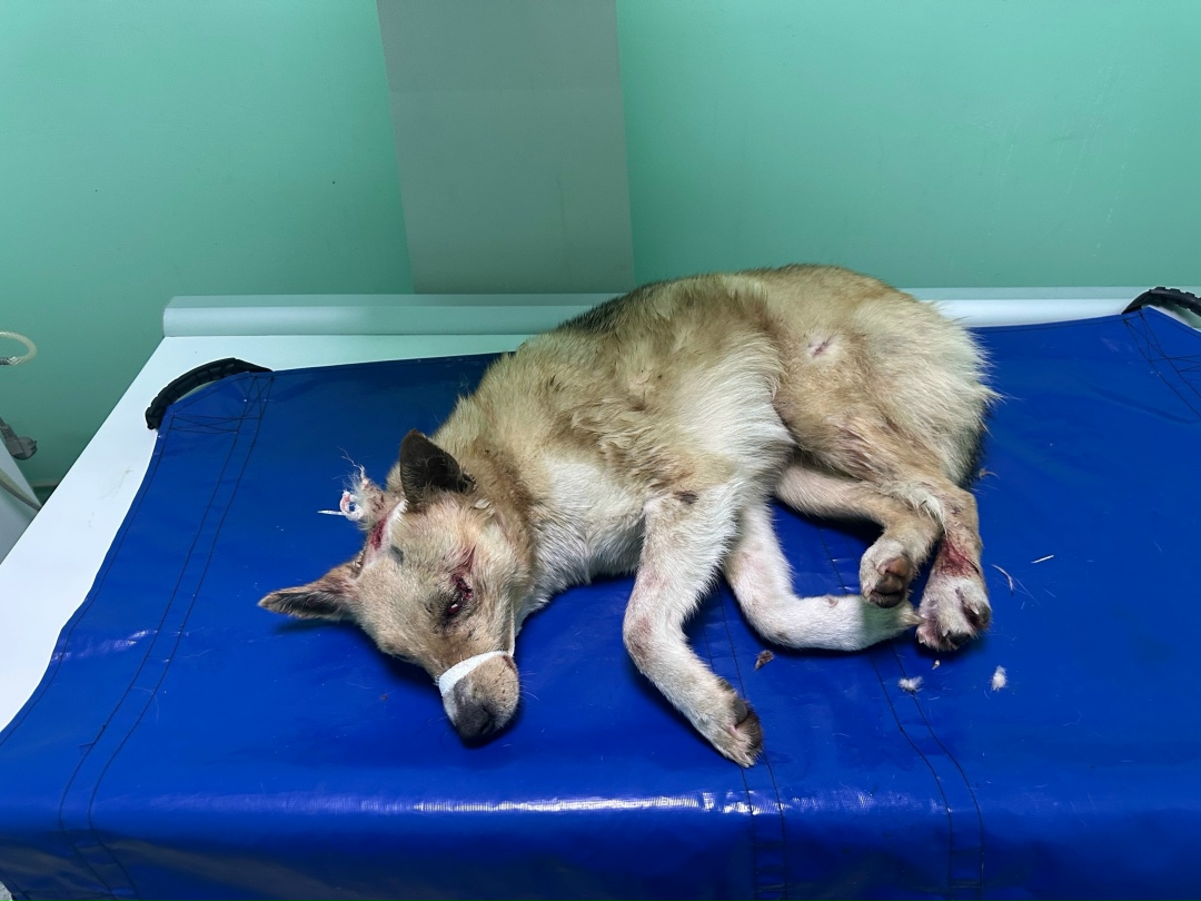 В ветклинике выяснилось, что собаке выстрелили в голову и дробь разлетелись по всей спине и телу.