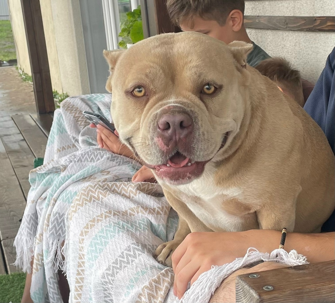 Пропала собака! Амбулли бежевого окраса!кличка Афина! На собаке красный именной ошейник! Курский район, д. Гремячка.