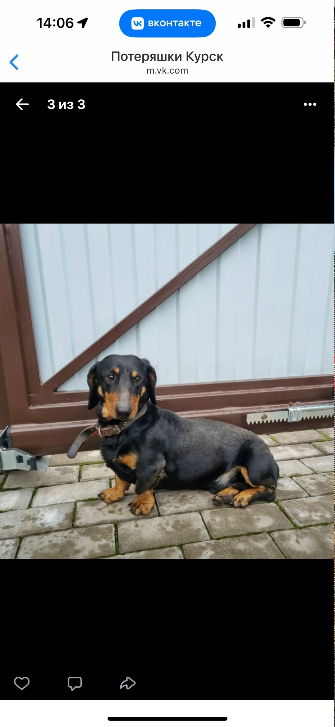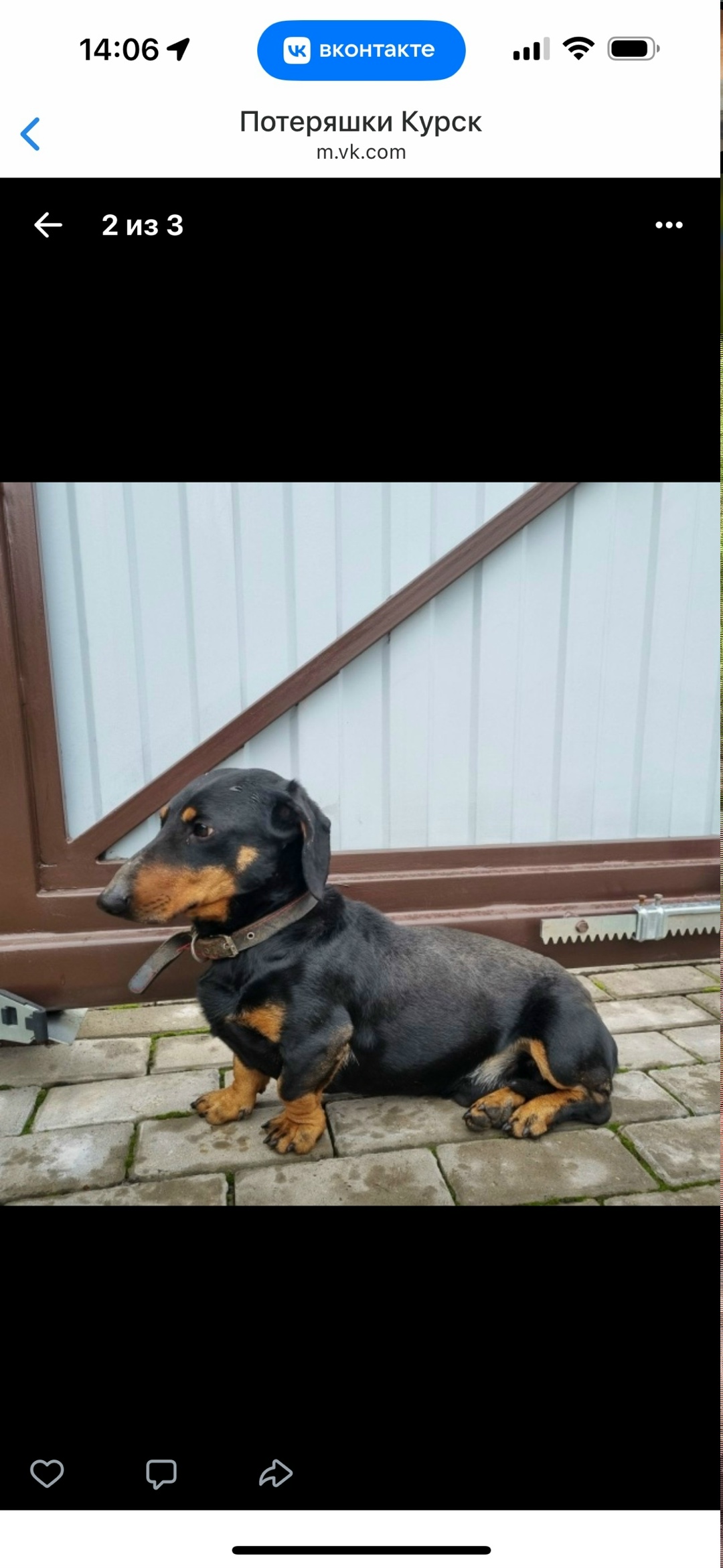 Найдена такса на верхней Луговой, бегает в панике , хозяин найдись