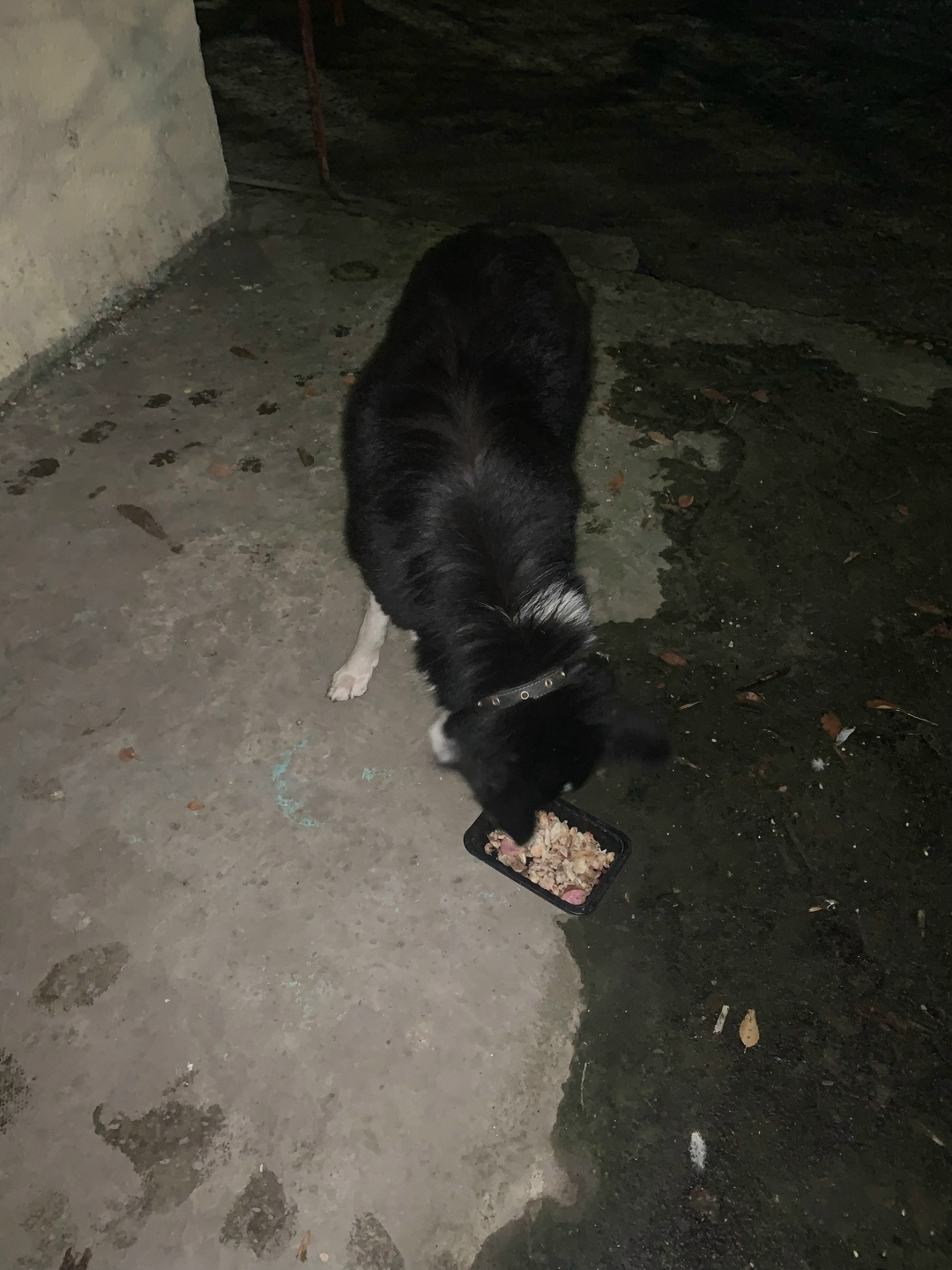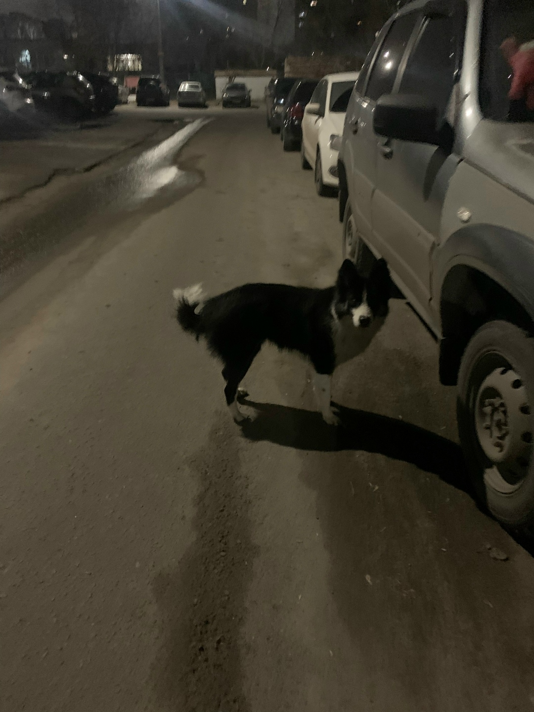 Бегает в районе Кулакова. В ошейнике. Контактный.