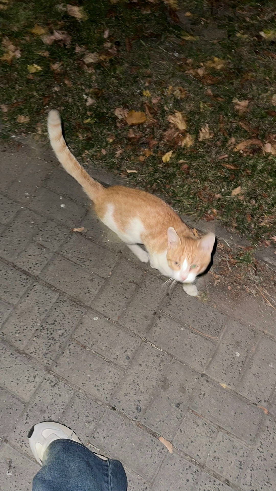 Найден ухоженный кот. Рыжий с белым. Глазки грустные. Ласковый