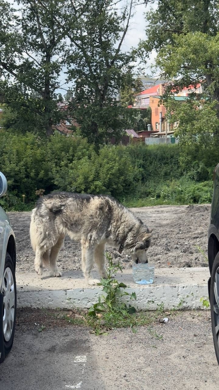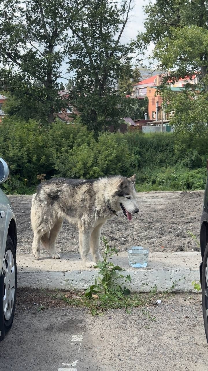 На улице 9 января (здание Фабрика окон) примерное время в 12:30 — на парковку пришел старый хаски с ошейником, возможно потерялся, заблудился. Очень слабо передвигается, видно что задние лапы слабые, а одна в ранке и на нее еще хромает.
