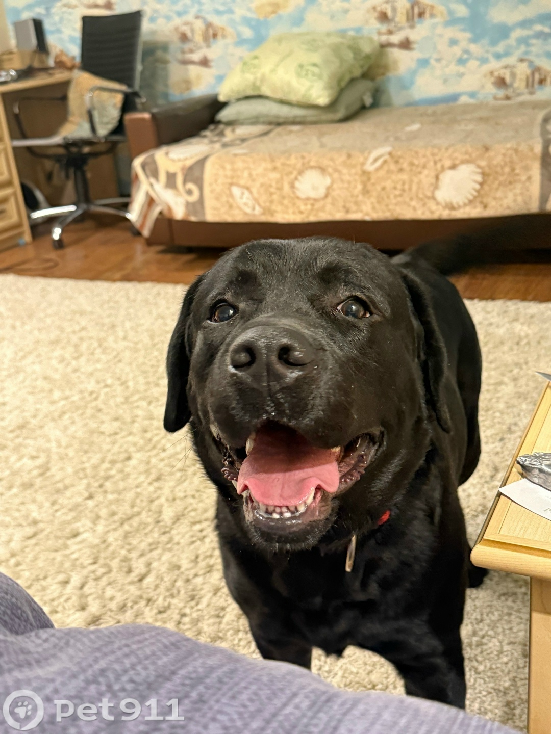 Внешность:Черный лабрадор 2 лет, мальчик с коричневым ошейником. Поведение:добрый, энергичный, приставучий, наглый(Может сам зайти в магазин продуктовый или ваш дом)