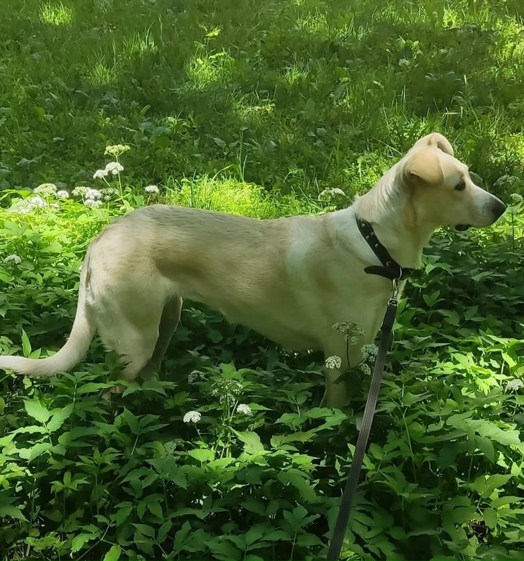 Пропала собака, цвет белый. Кличка Багги, рост 56 см. Вес примерно 35 кг. На ней был черный ошейник и красный от блох.