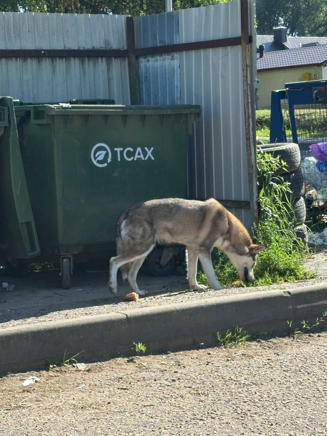 В поселке Бурашево бегает собака. На вид ухоженная, но видимо истощена.