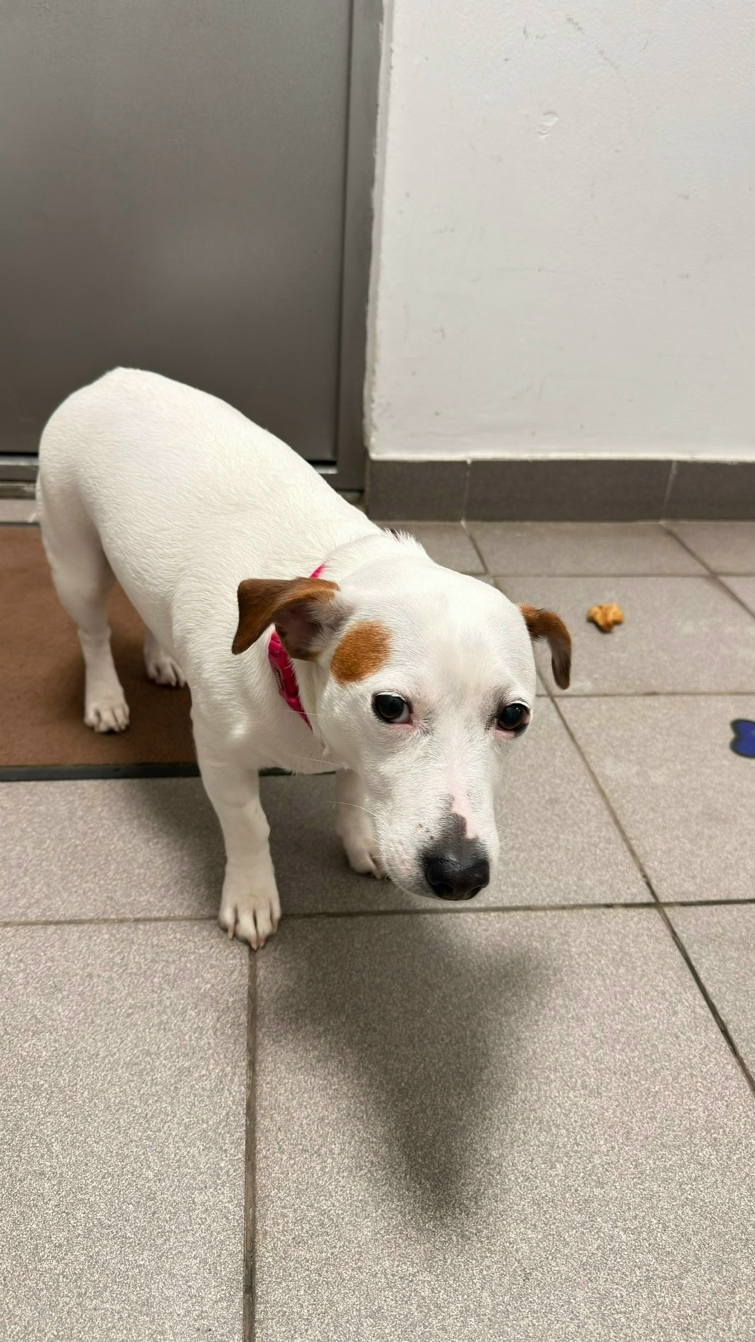 Советский район Брянска. Девочка, очень испугана. На шее розовый ошейник. Находится в районе мини-рынка.