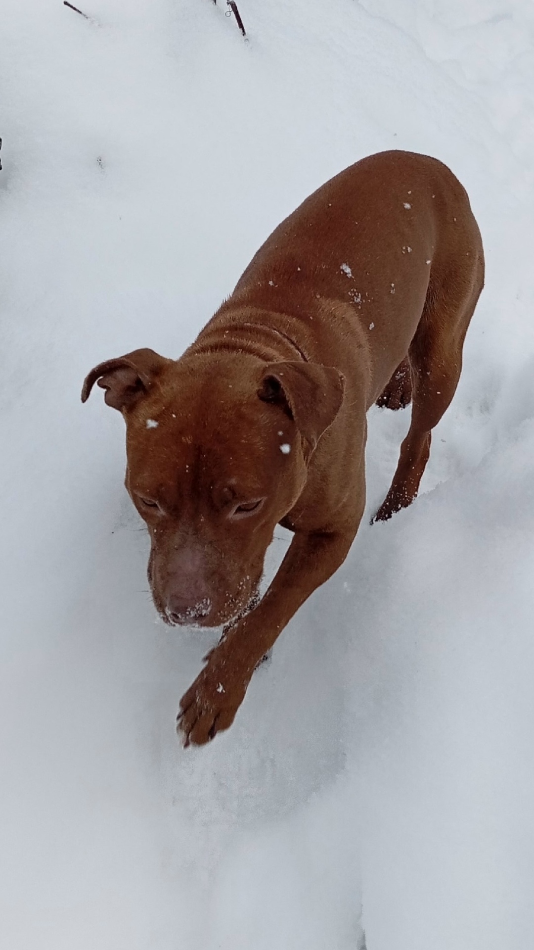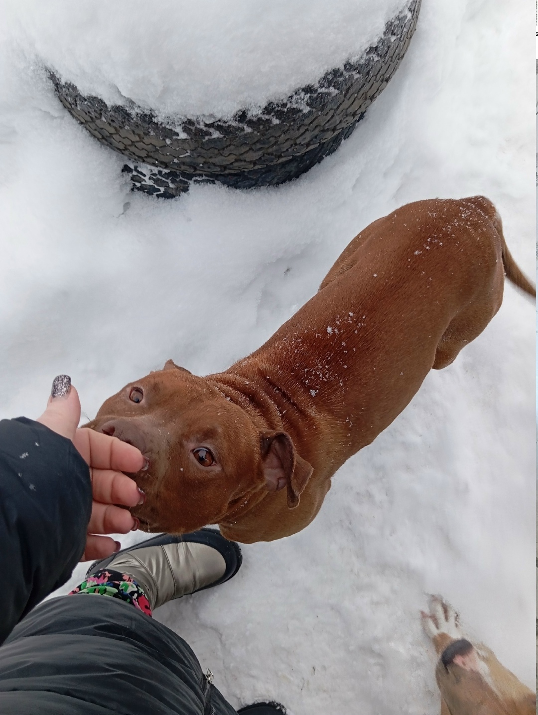 Найдена собака питбуль, чистопородная девочка, окрас шоколад, "редноуз".