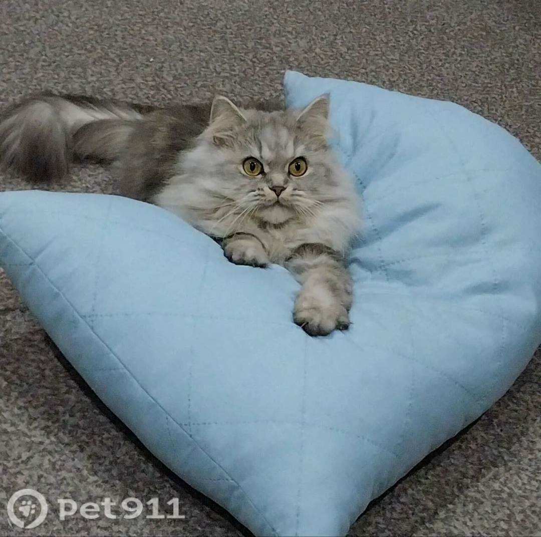 Серый окрас, желтые глаза, средний размер, длинная шерсть, пугливый