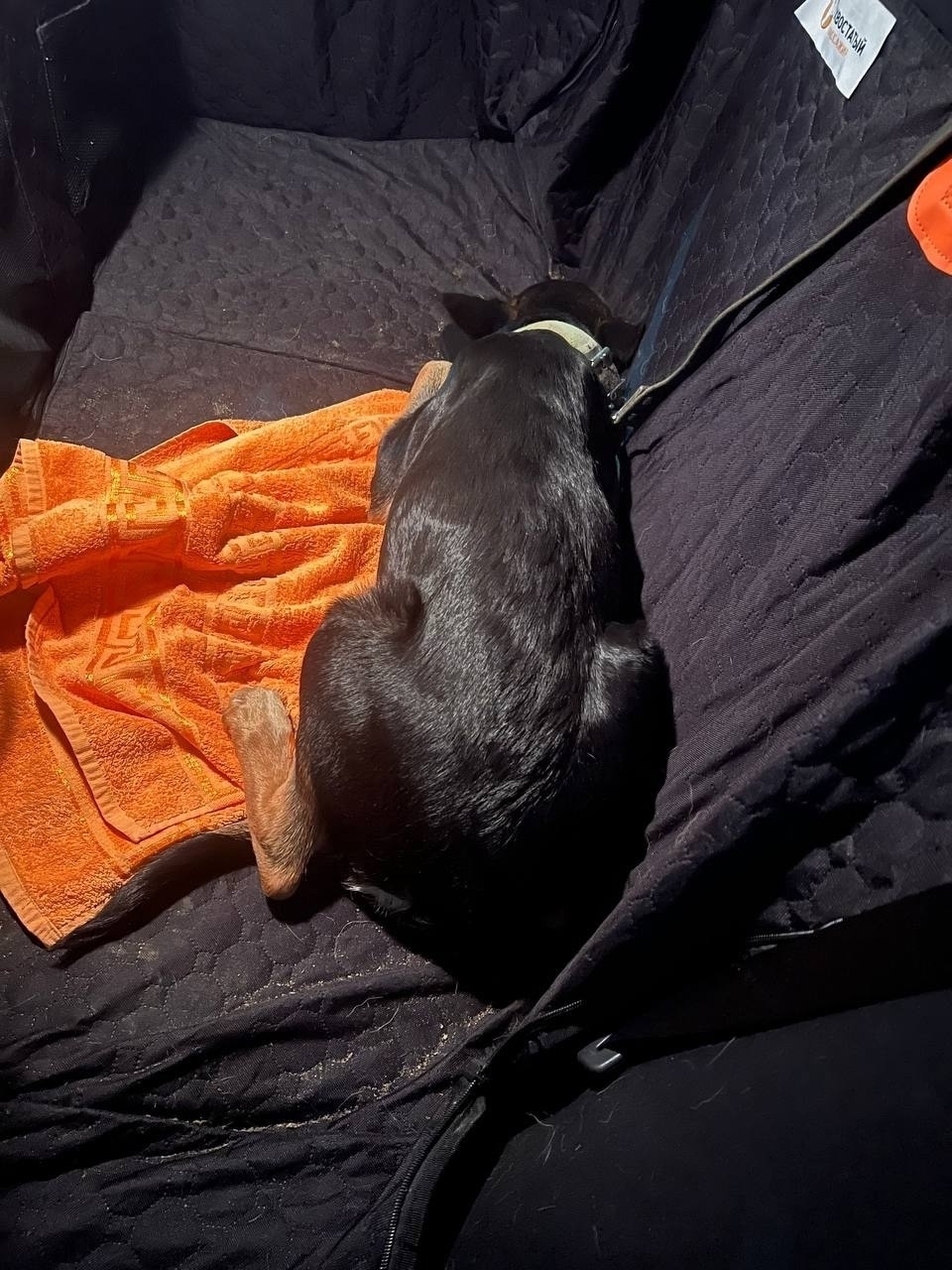 ️В районе клиники Ветмир (Калашникова, 28 Б), ночью 15 октября вырвалась, убежала в сторону улицы Люлина (Пустошь Бор)