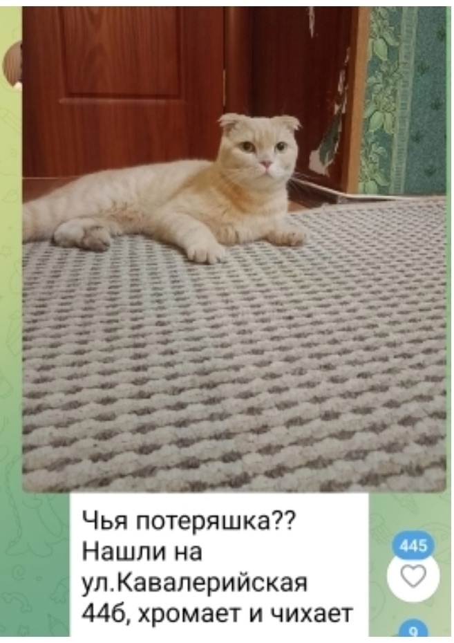 Срочно нужна помощь в пристройстве на дожитие.🙏🙏🙏🙏🙏🙏🙏🙏🙏🙏🙏🙏🙏🙏🙏🙏🙏🙏🙏🙏 Кот, около 2 лет. Бродит в домах на ул. Кавалерийской в районе магазина Магнит где-то с начала сентября. У кота проблемы с суставами, которые не лечатся(((( В остальном животное здорово, лёгкие чистые.. Скорее всего выкинули, а не потеряли. Рекомендации ветерана: регулярно стричь когти, чтобы не врастали и редко по необходимости колоть обезболивающее. Телефон для связи 27-33-00.