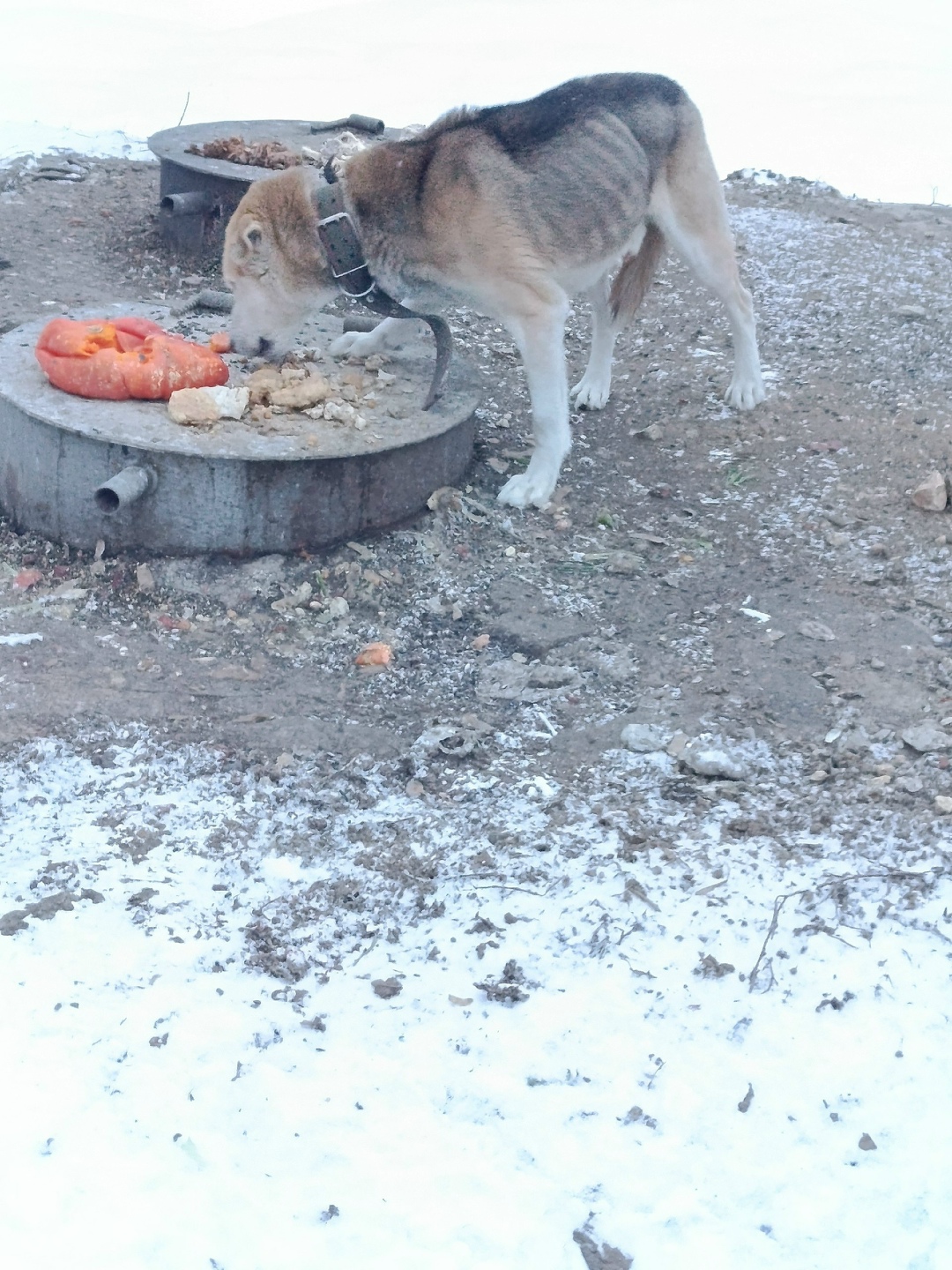 Видимо кто-то выкинул.... А может и потеряшка...на нем огромный ошейник...и видимо ооочень туго затянут.