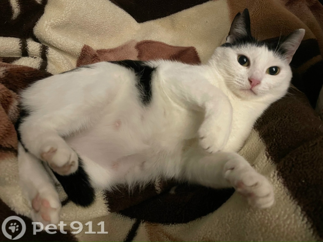 Пропала кошка,белая с черными пятнами,правое ухо кончик порван,хвост сломан,домашняя,упитанная,очень мягкая. Убежала когда открыли дверь в подъезд,сиганули даже не заметили.