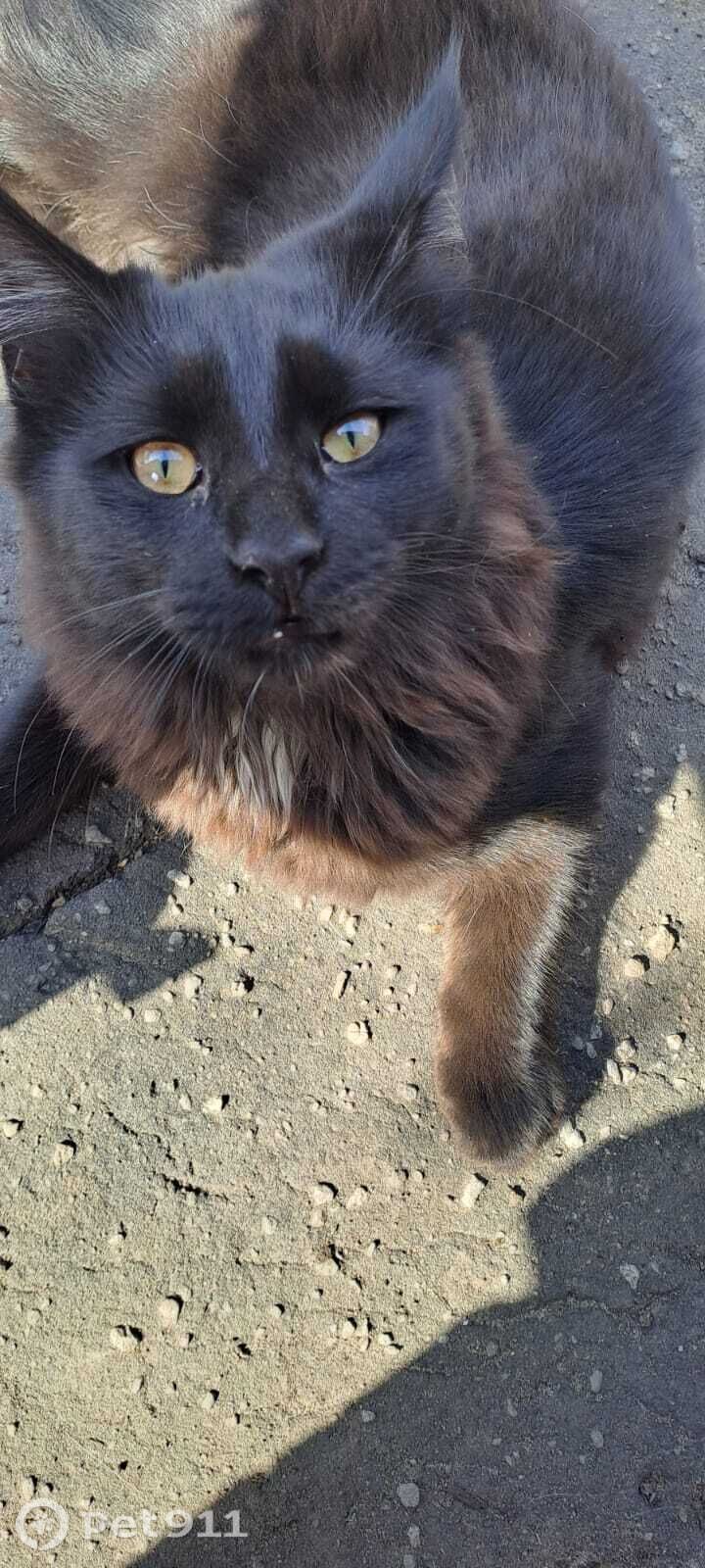 Кот Метис - мейуна, черный окрас, небольшой галстучек белого цвета на шеи, на животе несколько белых волос. Не явился после прогулки домой, далеко никогда не уходил, гулял около дома.