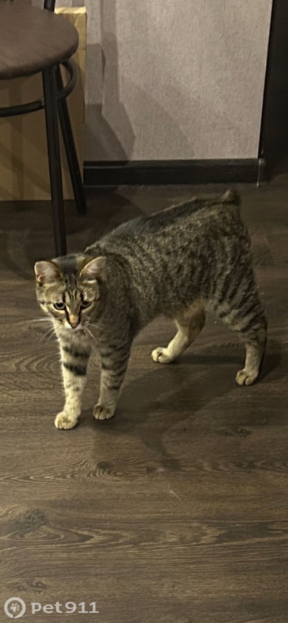 31 августа из окна выпал кот! Предполагаемое местоположение кота ул. Кирова 14-14а. Особые приметы: шерсть серовато-коричневая с черной полосой от головы до копчика. Красный ошейник и без хвоста!! Очень пугливый.