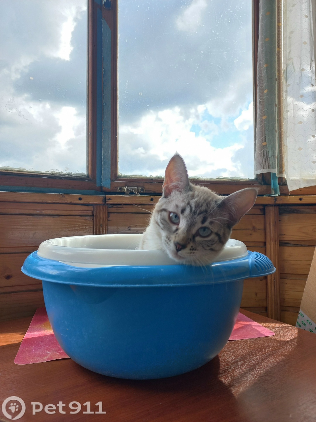 Я думаю она проскользнула через форточку на балконе ,у нее голубые глазки ,она совсем еще малышка