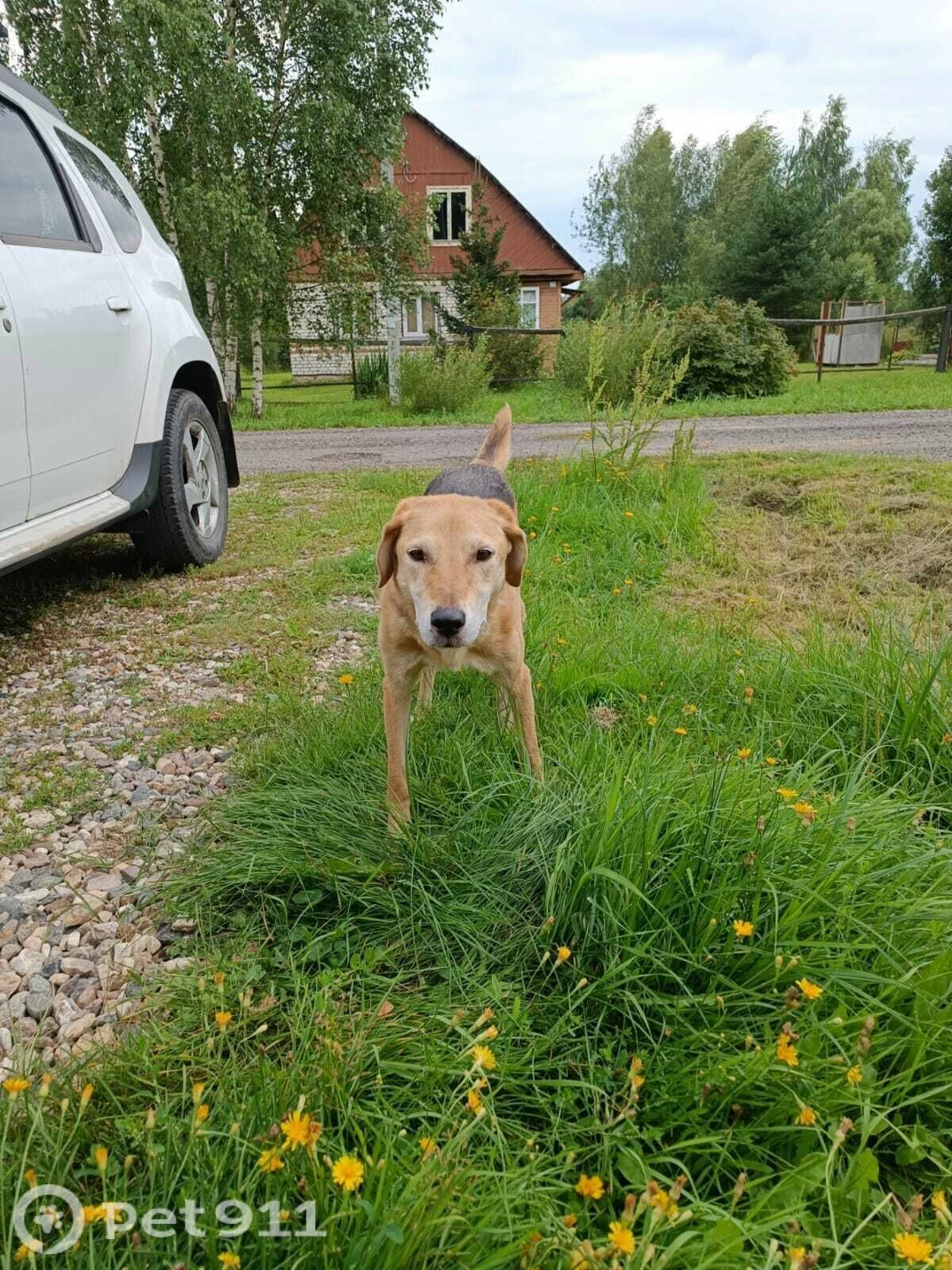 Две собаки похоже (см. Фото)одной породы появились 01.08.2025 в деревне после стрельбы (охоты?) в лесу 31.07.2025. Гуляют по деревне с утра