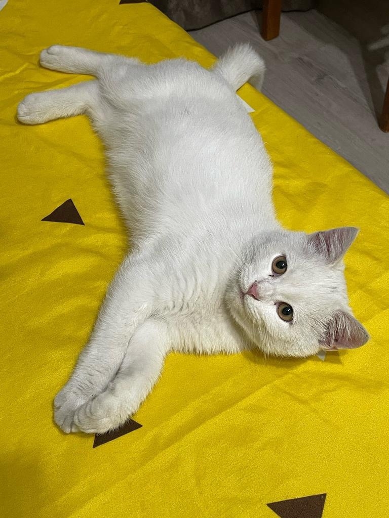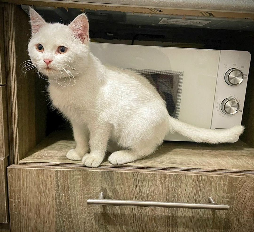 Кот молоденький(около 5-6 месяцев),чисто белый окрас.Очень ласковый,игривый и любознательный😊Очень любит играться.Ему нужны внимание и забота.