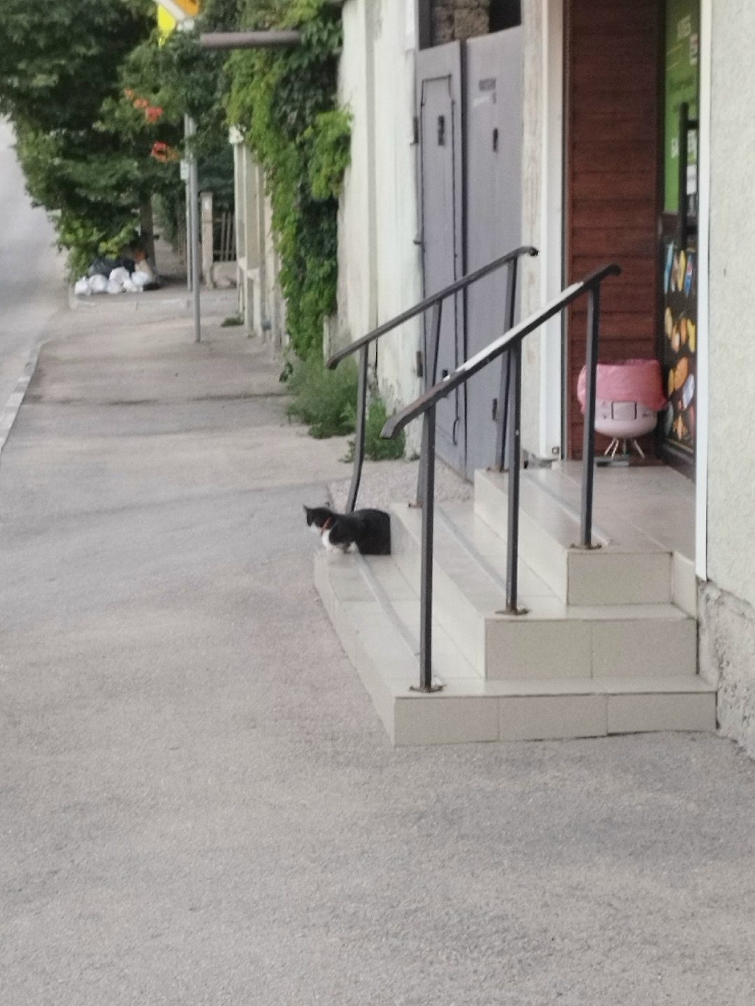 Кошечка или кот с ошейником сидит возле магазина по Ул. Леси Украинки около пер. Туристов. Кто потерял? Или самовыгул?