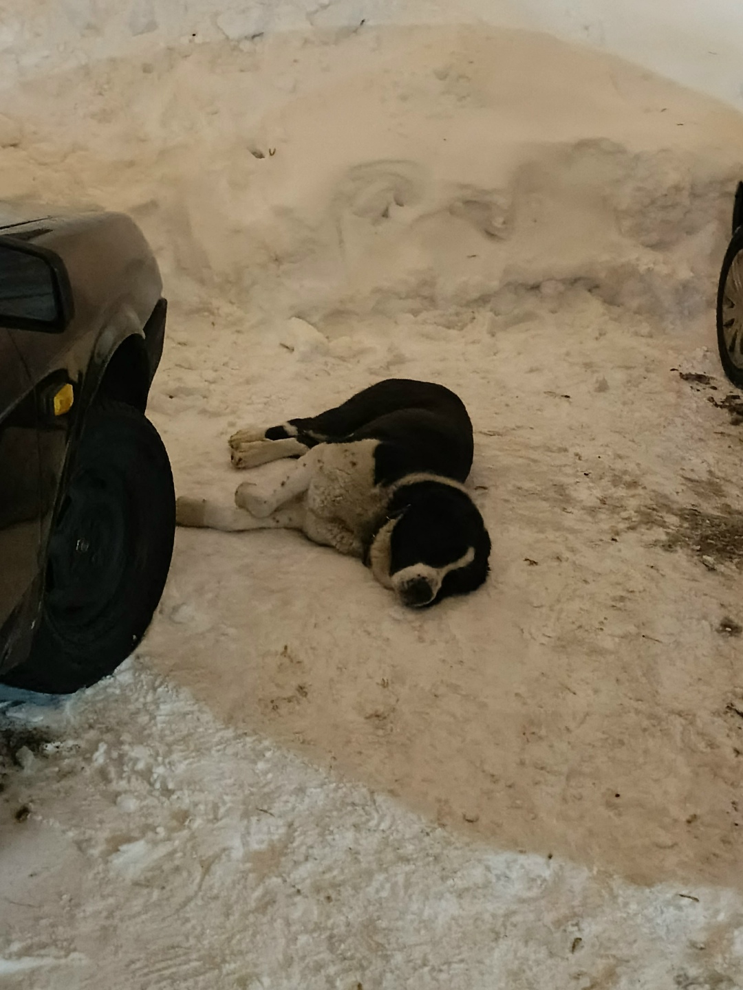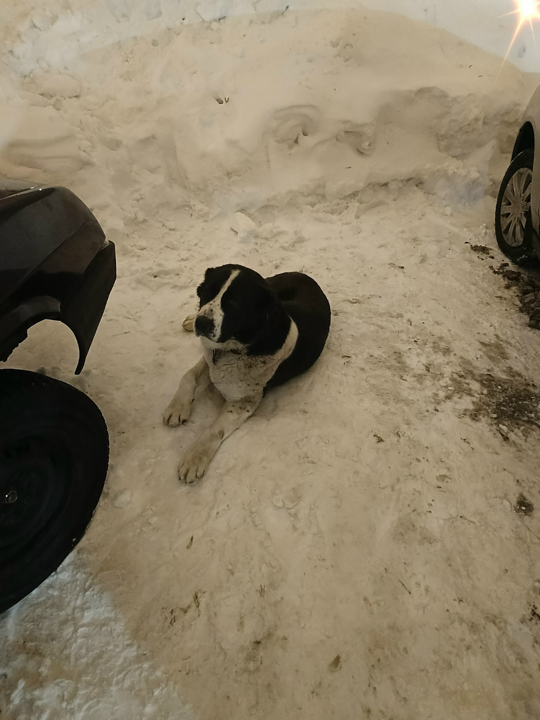Возле дома по улице Пархоменко 145, между машин , лежит собака не встаёт , повреждены ноги, толи сбила толи отмороженные ,с ошейником может кто-то потерял накормили . взять на передержку не можем. 22:00 ещё там была. Похожа на Алабая.