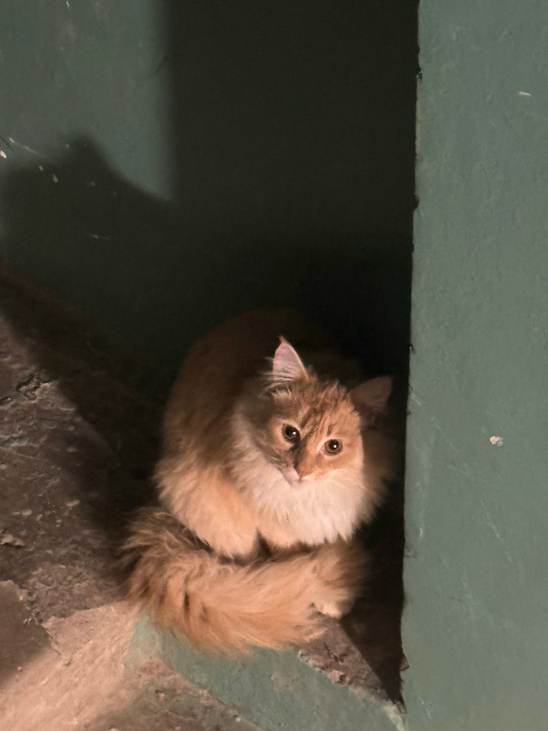 В районе лицея 39 найдена 30.10 кошка/кот,в 23.00 обнаружили ее около пятерочки абсолютно чистой ,увязалась за нами в подъезд ,видно что домашняя,мяукает и вылизивается ,чистенькая 😊😭