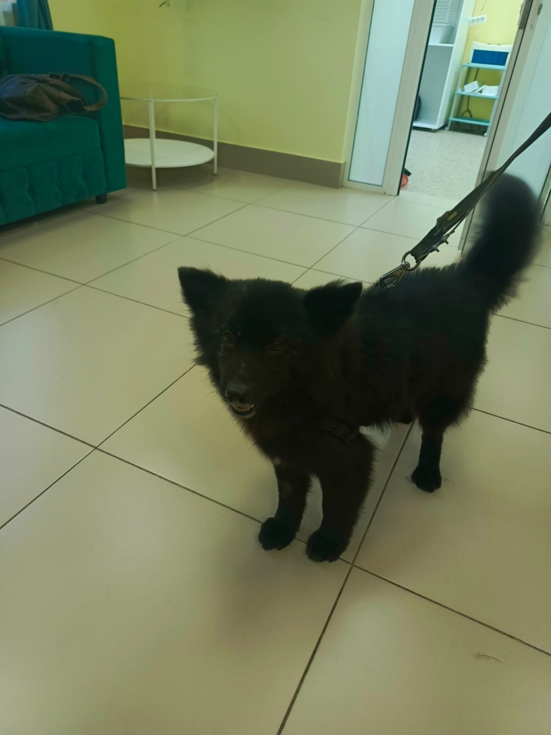 Черного цвета, на левом боку нет куска шерсти, очень дружелюбный, убежал без ошейника.