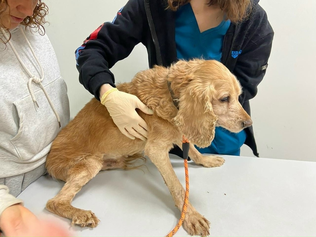 Сегодня утром после грохота в район Технологии пришёл старенький кокер. Истощен, но, кажется, подстрижен. Очень растерян и потерян. На глазах бельмо, в сердце шумы, возраст сильно за 10 (были в клинике)