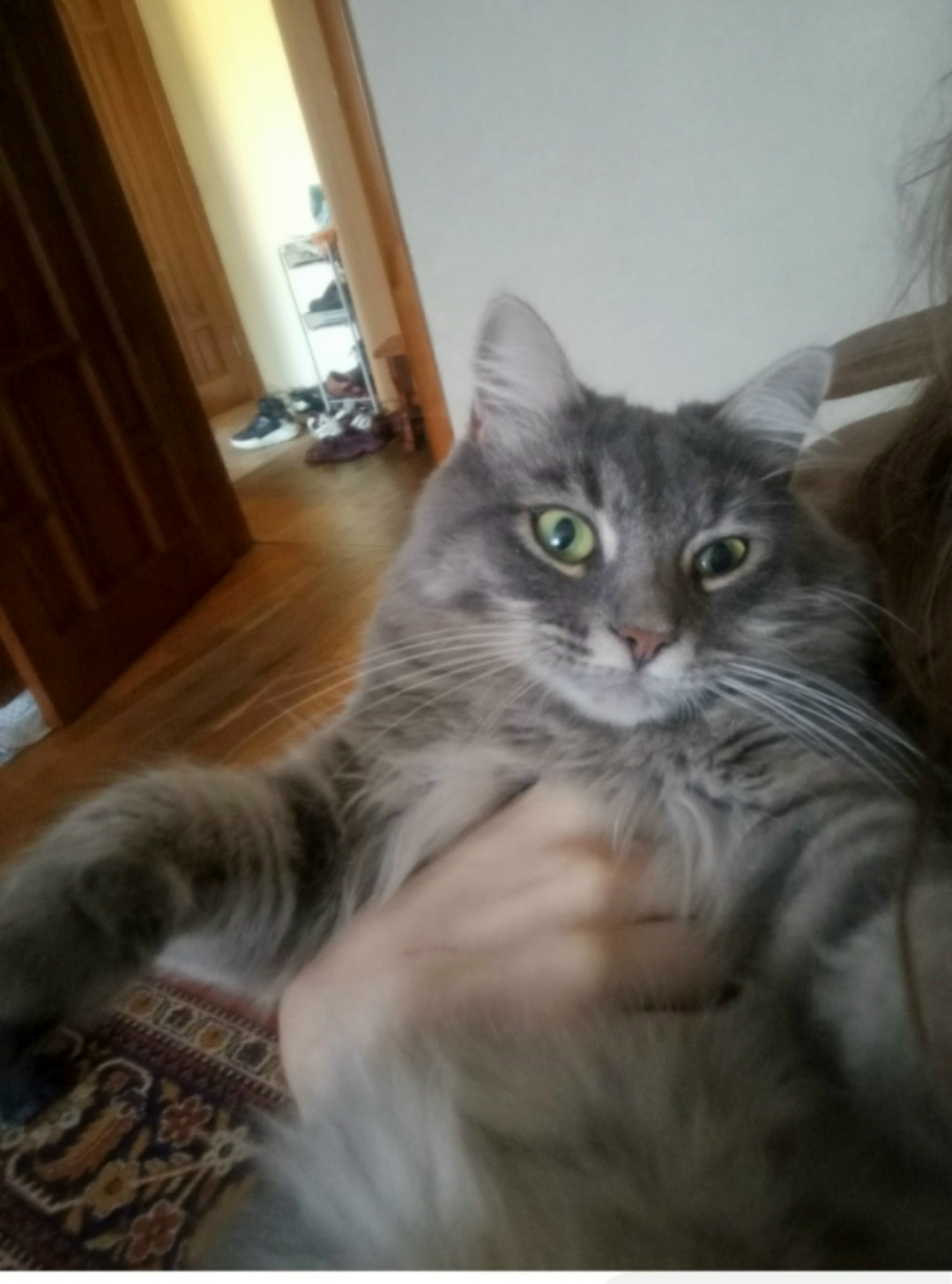 Потерялся кот 2 года, серый окрас длинношорстный, кастрирован, откликается на кличку - дымок