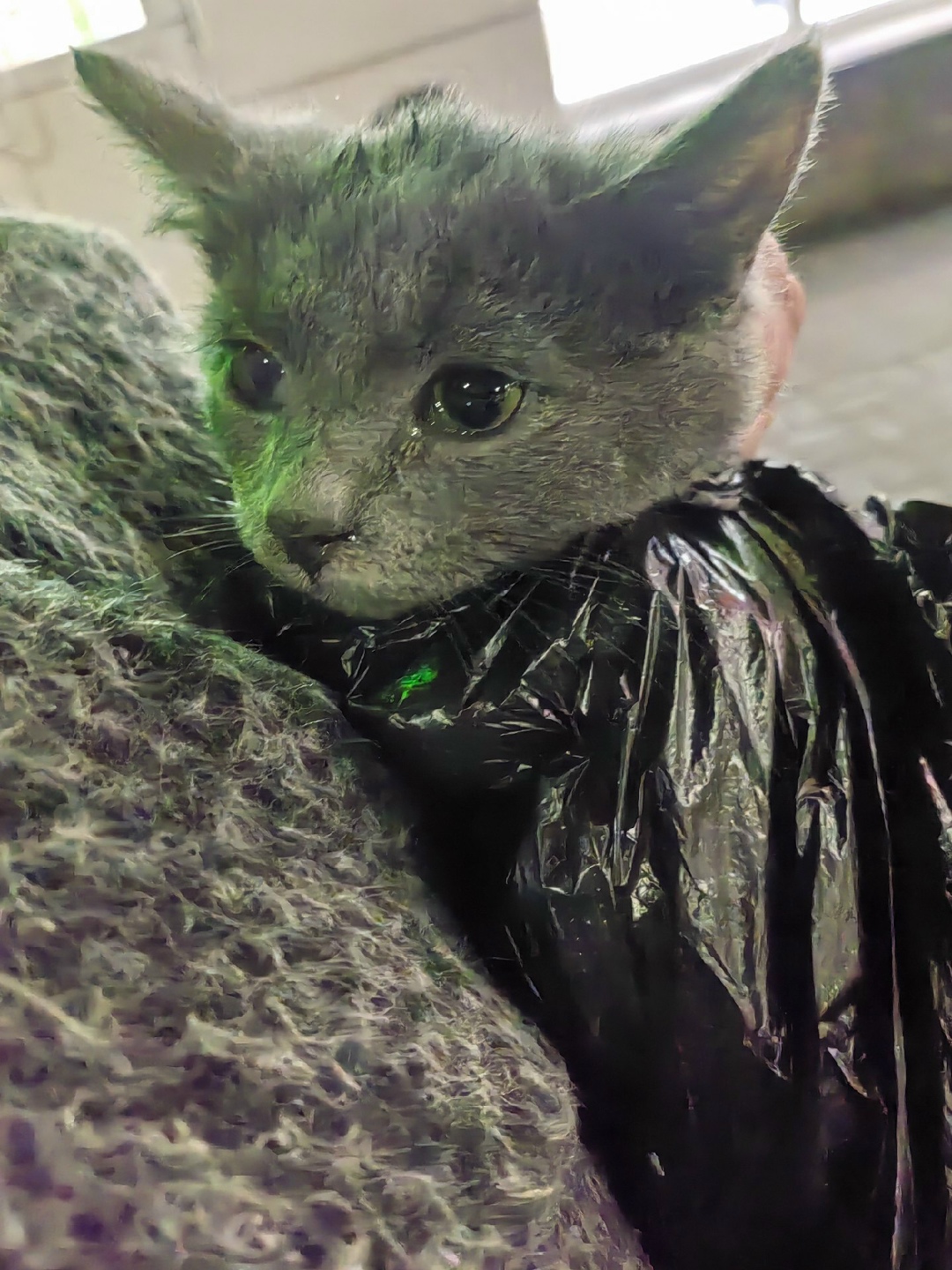 Серый окрас, что-то с глазиком 😢