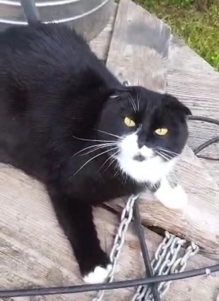Пропал кот 09.10.2025 в районе Ольговки, Окружной, СНТ Ястребовка. Вислоухий, черно белый, одна бровь бесцветная, хвостик не длинный, на кончике искревление. Ищем!!! Очень ждем известий🙏🙏🙏