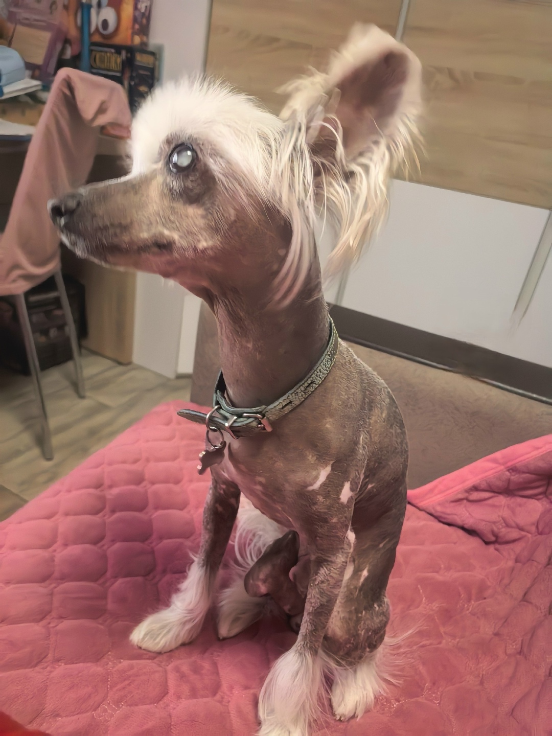 Пропала собака, кобель Китайской хохлатой породы, 27.07 (2 недели назад) в д. Георгиевское (рядом Пучково, Тинино, Крутицы), кличка Альдо.