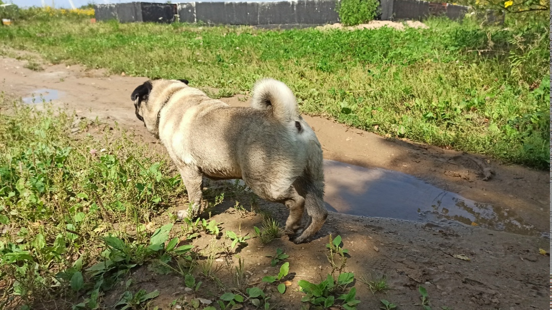 Нашли мопса, кобель, в ошейнике. Ходит между домами на улице Лермонтова между деревнями Большая и Малая Каменка, Груздово, встретили сегодня 5.08 в 11:30