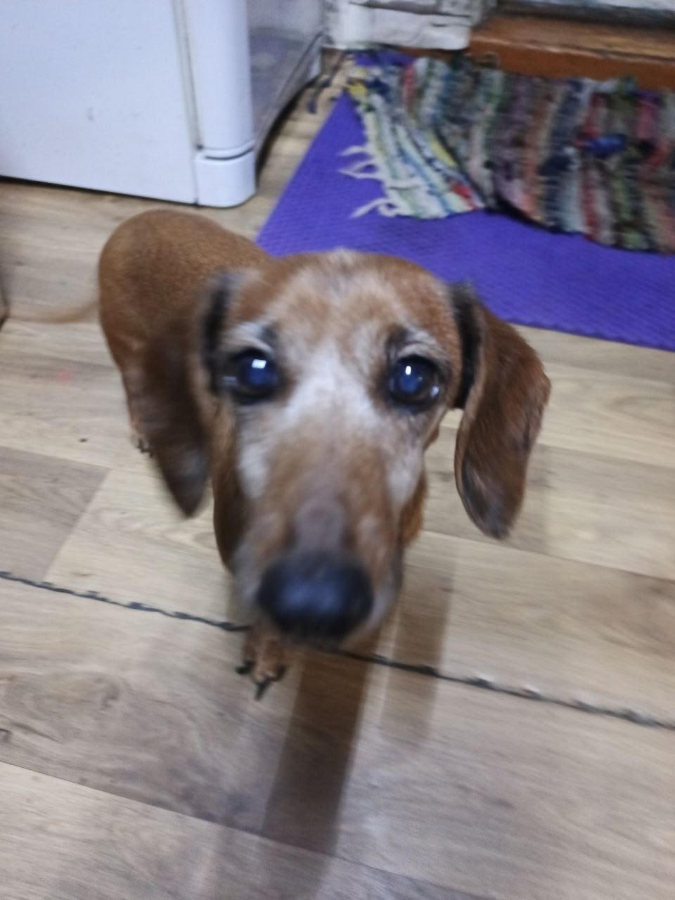 Нашли примерзшую к земле таксу, на ул.Песчанной ,собака очень скучает может кто нибудь знает чья? 89243889523