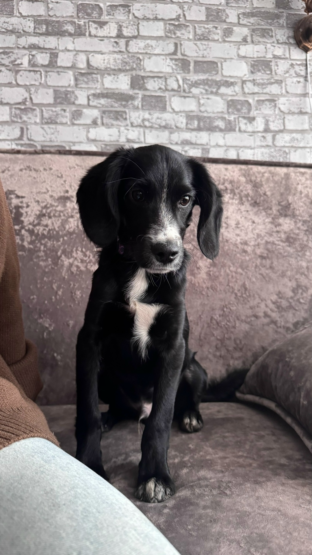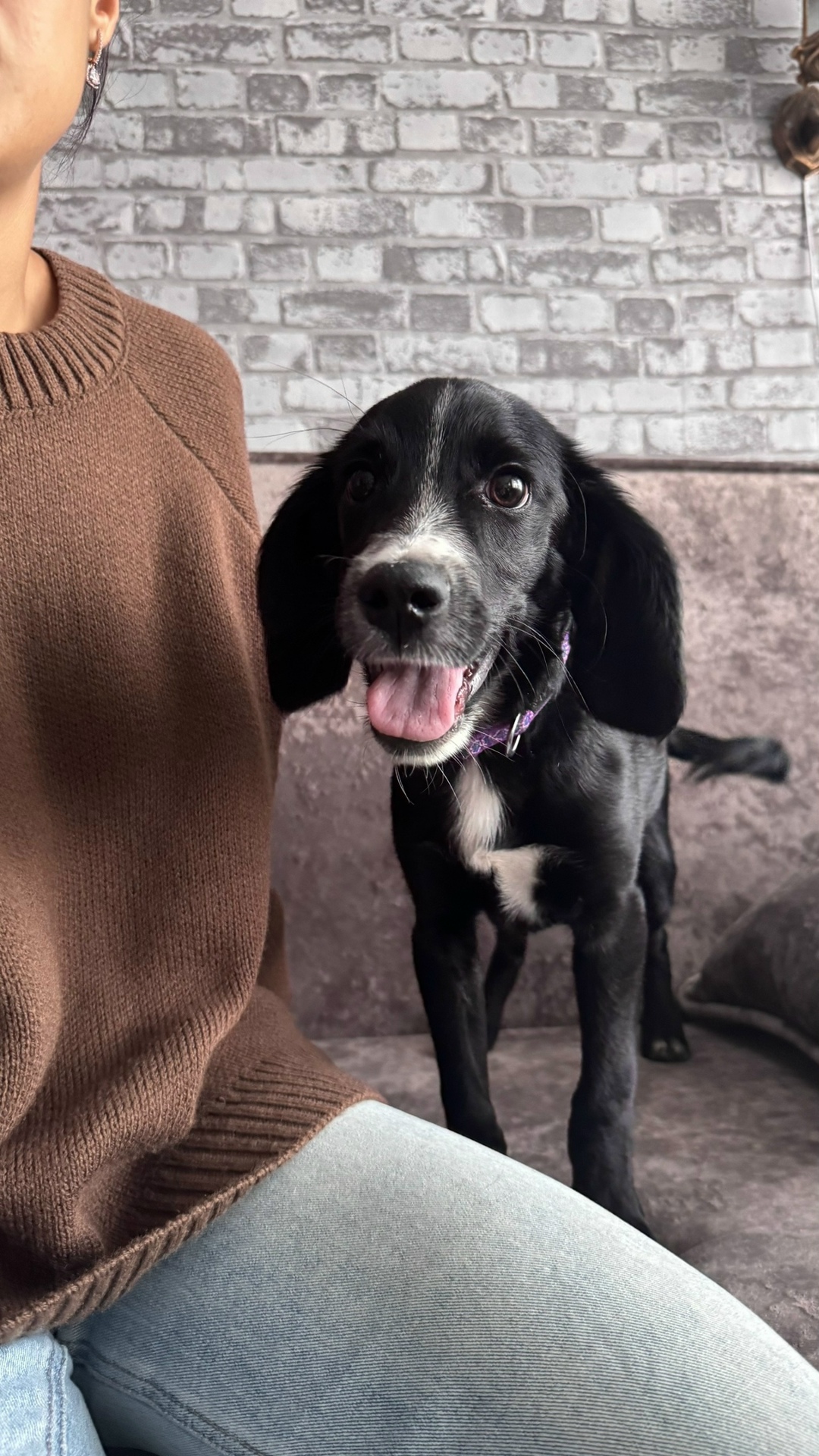 Найдена собака с фиолетовым ошейником в районе Курнатовского 37, просьба связаться 8-995-553-35-20