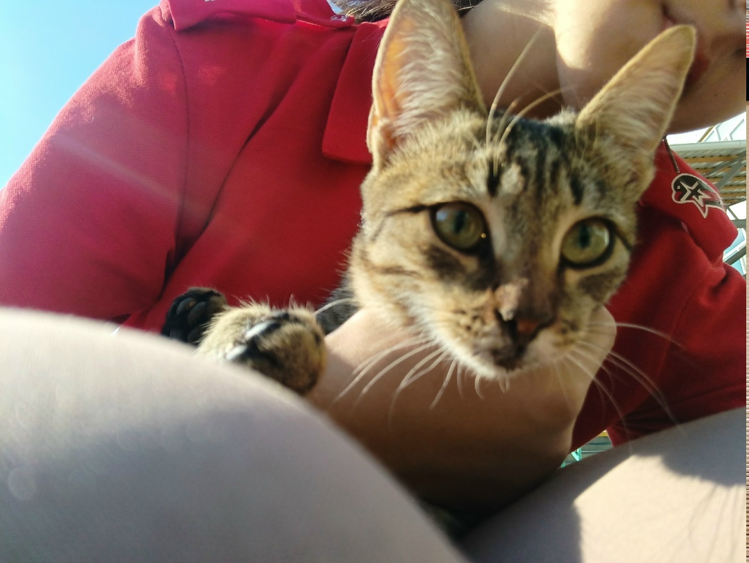Возле 28-й школы нашли милого котёнка. Видно, что она росла в домашних условий, так как даётся в руки. Обнаружили её всего вчера возле школы, а чаще всего она находится возле пятиэтажек.