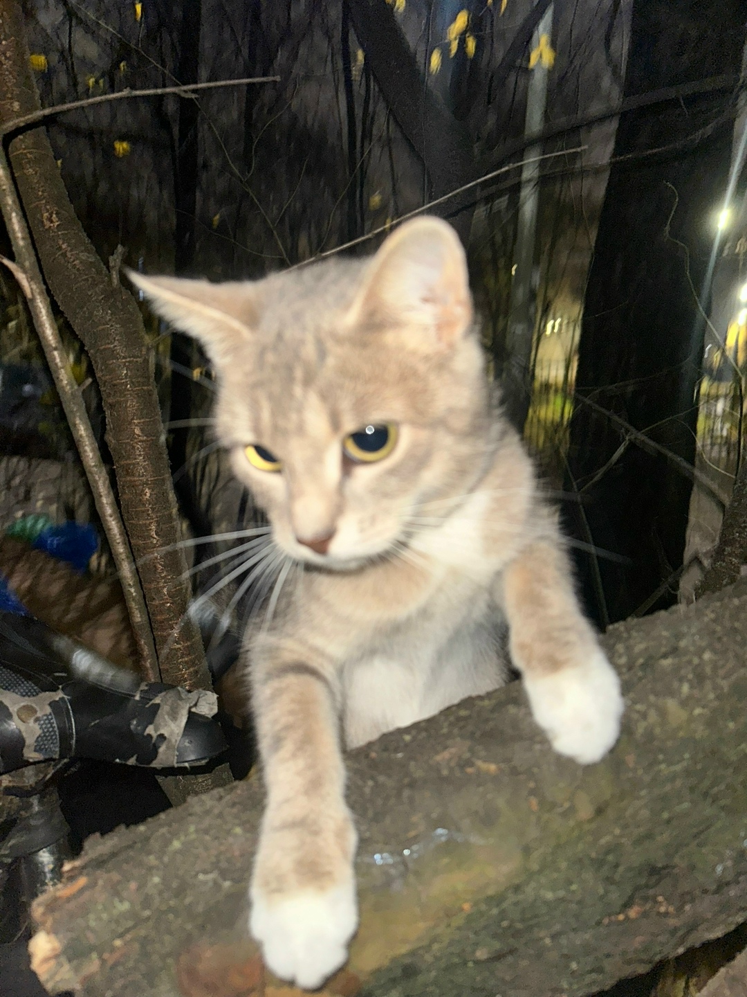 Найдена кошка по адресу ул. Попова д.34. Видно, что домашняя и ласковая, на шее жёлтенький ошейник
