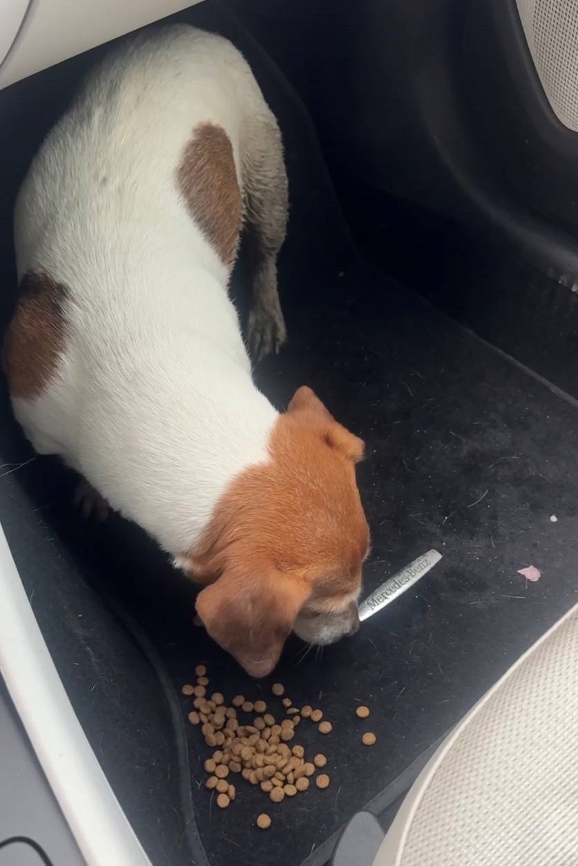 Бежала по дороге, чудом спасли. Очень напугана. Переживает.