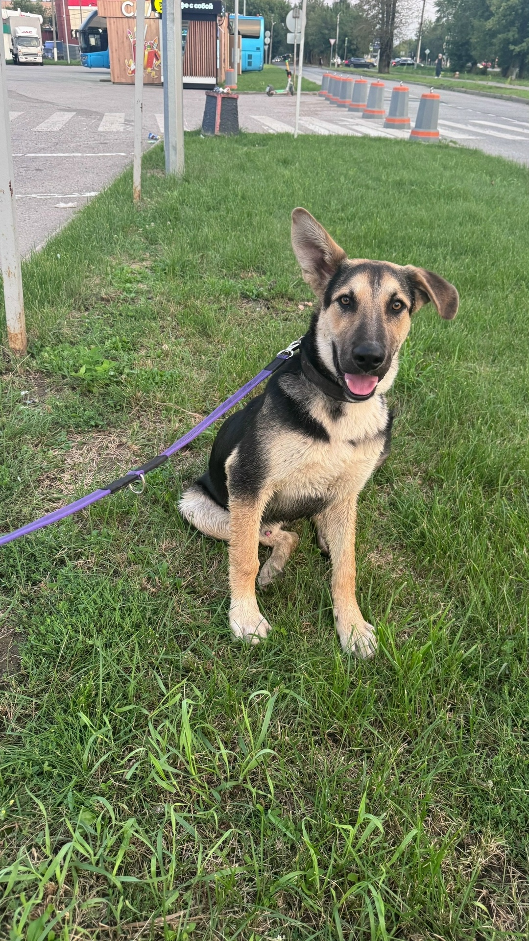 3 августа , в 20 часов метался по парковке Гран Сити , в ошейнике.
