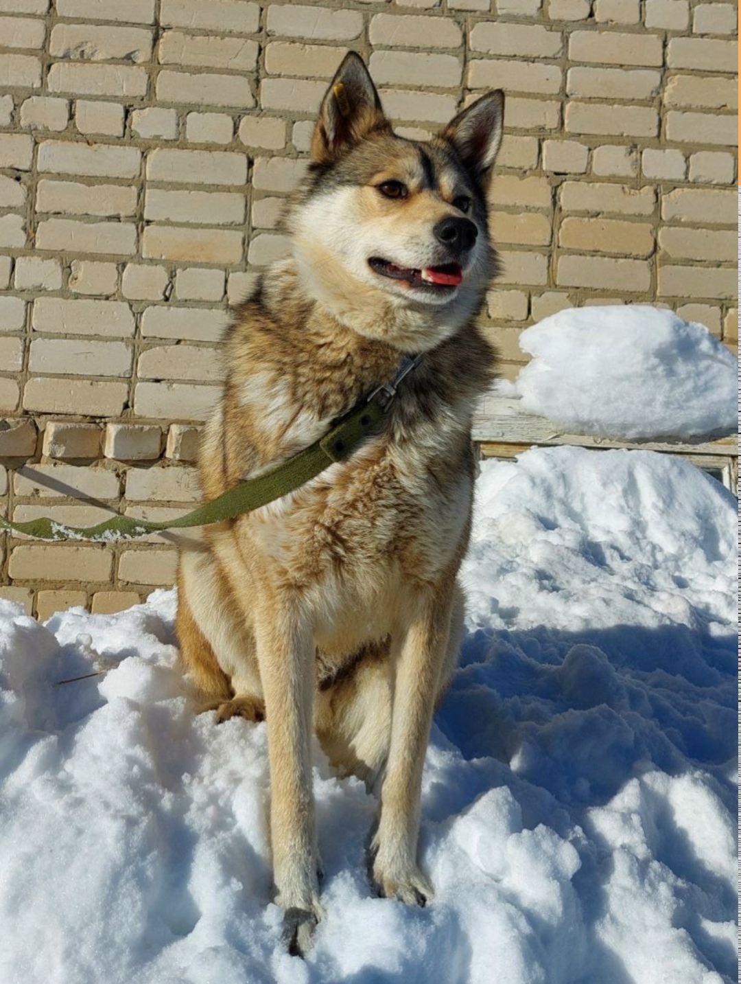 Ушки торчком , хвост крючком , очень ласковый и дружелюбный пес 🐕