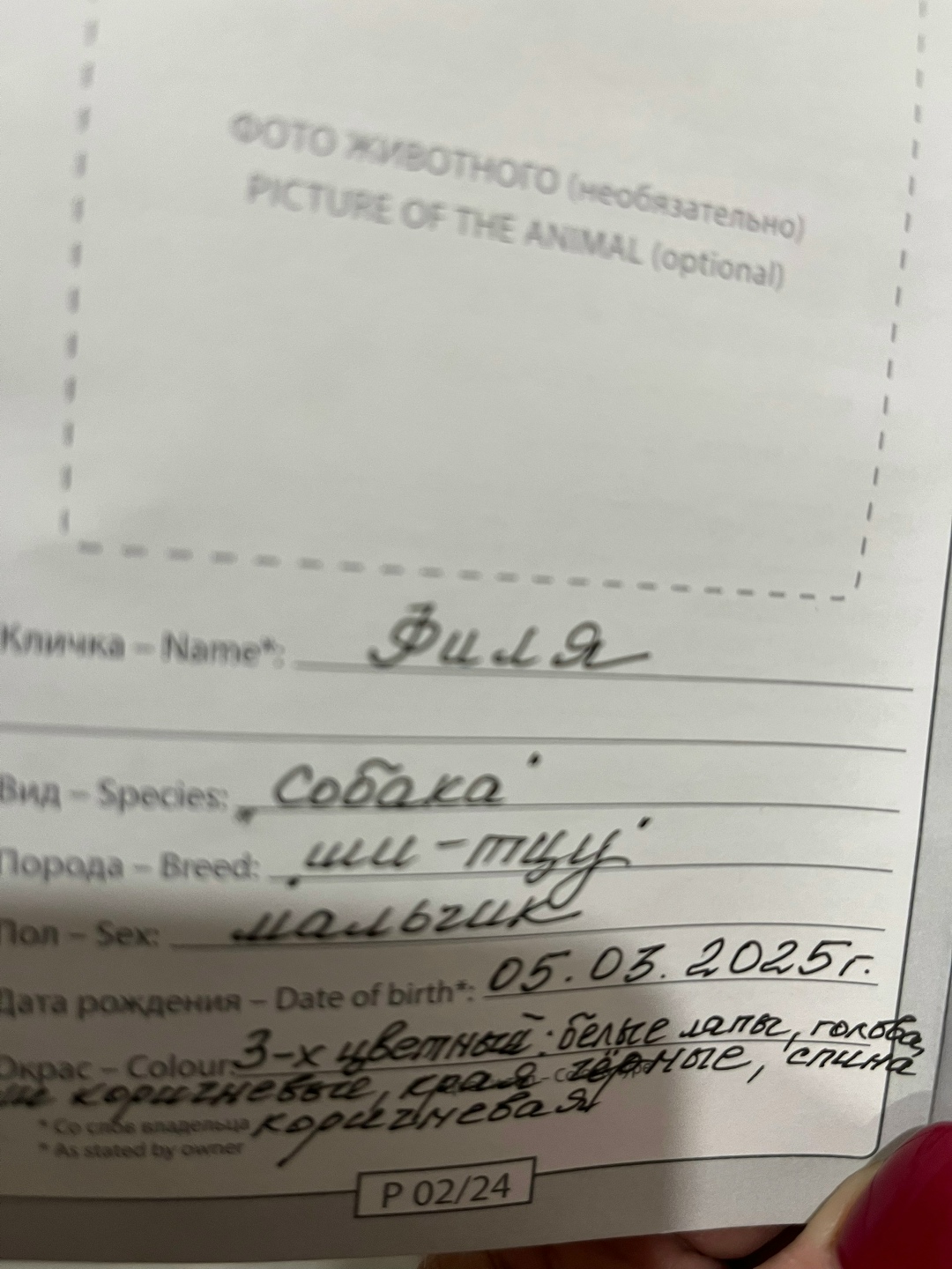 Найден вет паспорт собаку Феня порода ши-тсу в районе Т. Бибиной