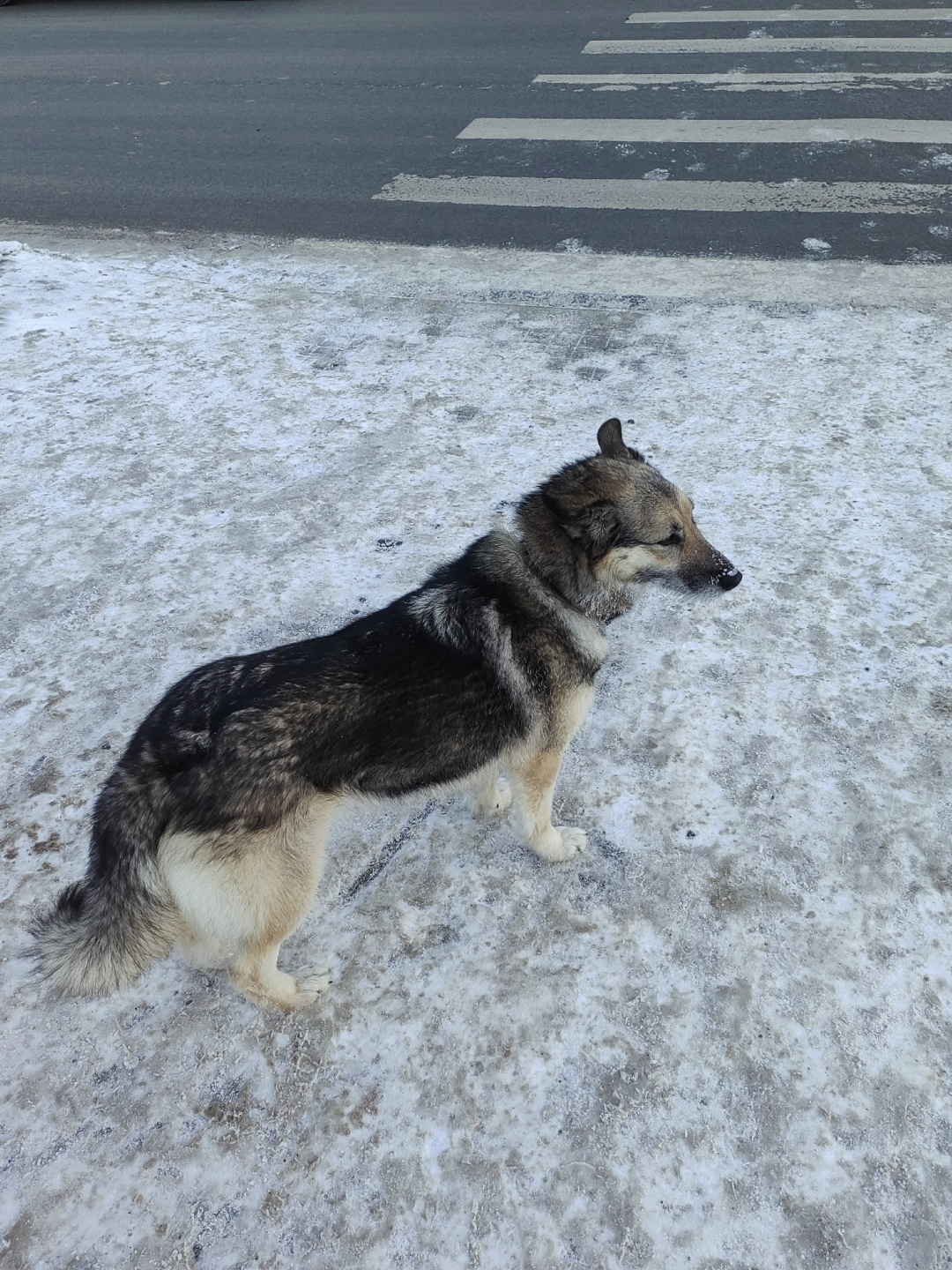 В центре бегает чья-то собака. Девочка. Видно, что домашняя, шерсть ухоженная, ошейник тряпичный с оранжевыми вставками, может, кто потерял