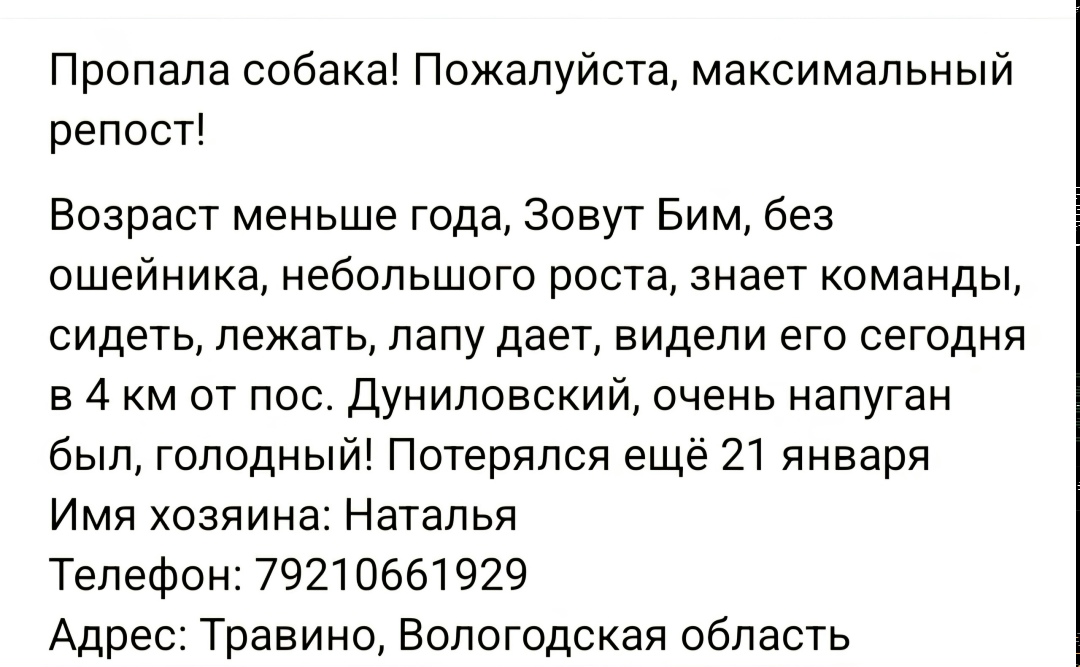 Пропала собака — Вологда