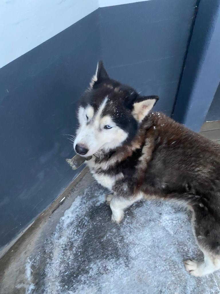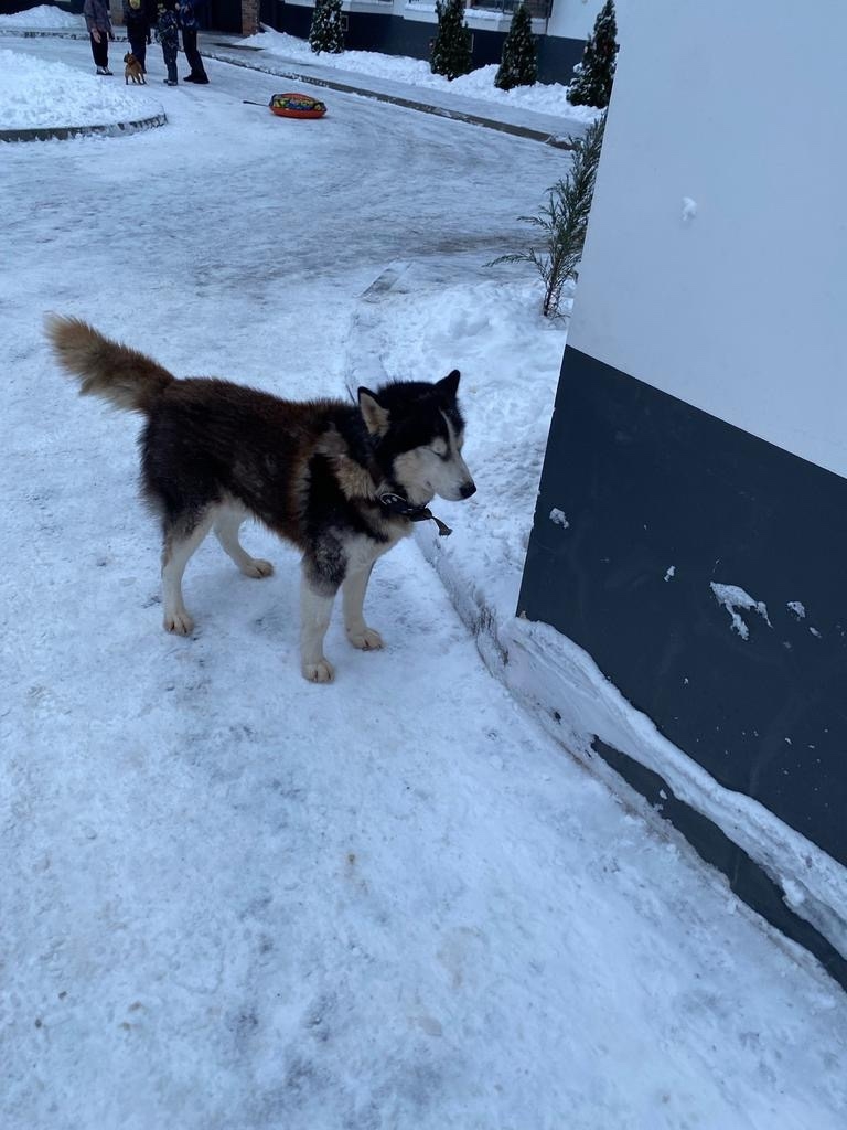 Во дворе дома по адресу ул. Чернышевского, 84 с вчерашнего дня находится очень дружелюбный хаски. На собаке есть ошейник, видно, что она потерялась.