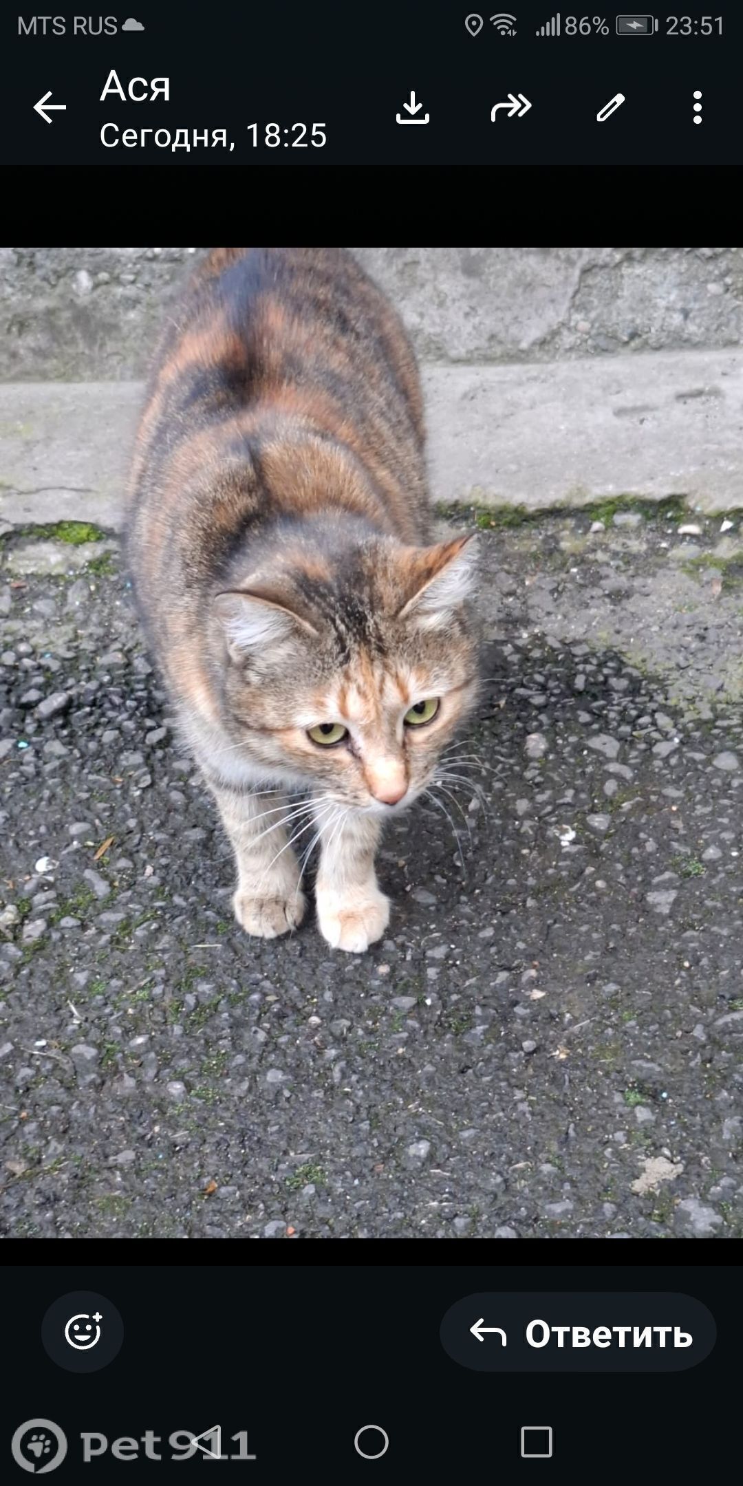 Найдена кошка! Пожалуйста, максимальный репост!