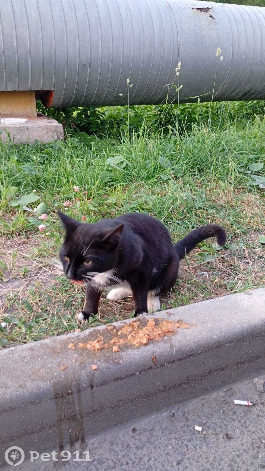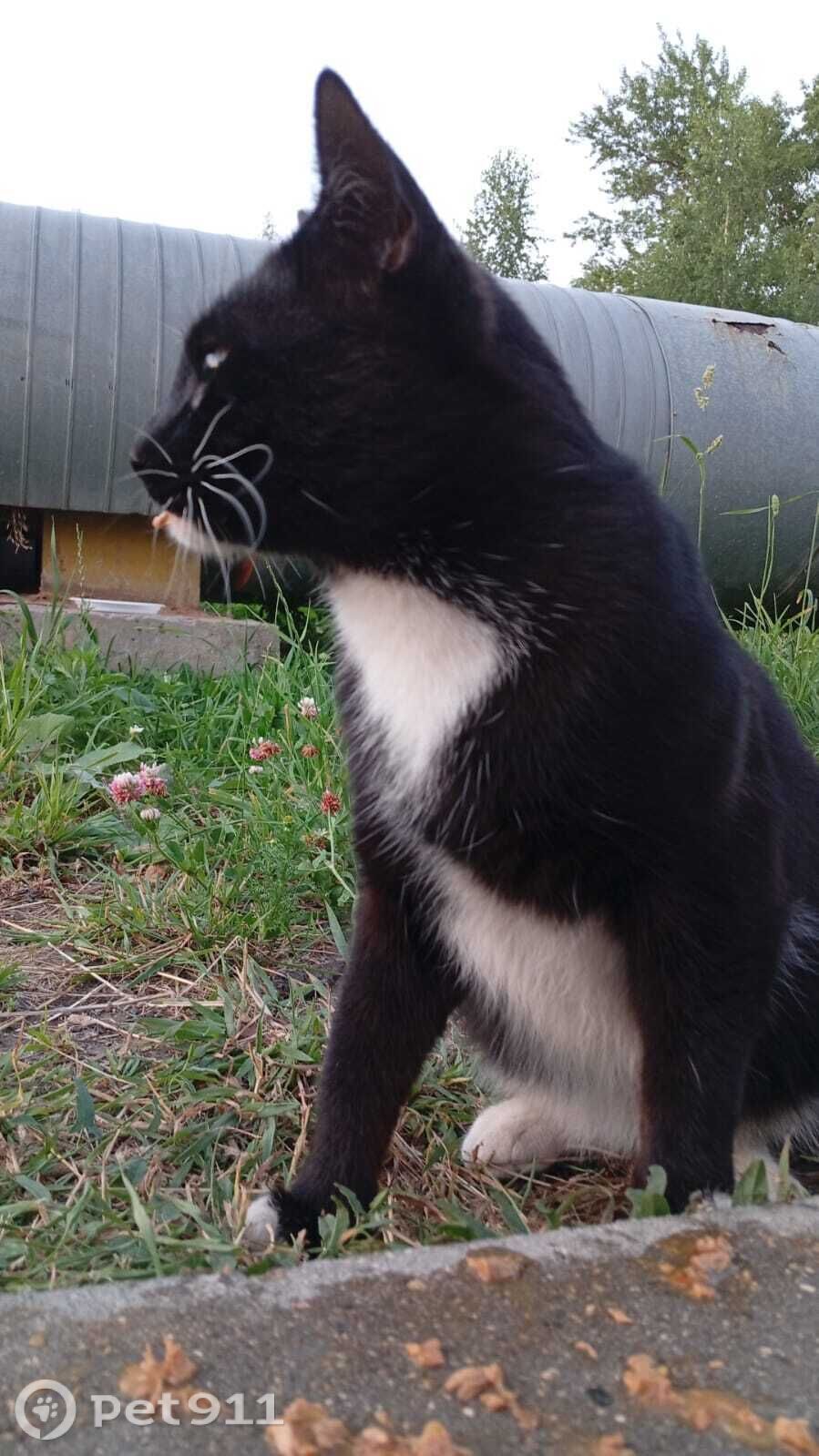 Кот обитает возле жилого комплекса по адресу Вологда, Космонавта Беляева 32 (рядом с мусорными баками). Окрас черно-белый, черный сверху а на брушке и лапках белые пятна. Ласковый, разговорчивый, активный, дает себя гладить, когда зовешь (кыс-кыс) подходит. Кормим его и наливаем воду, вес нормальный.