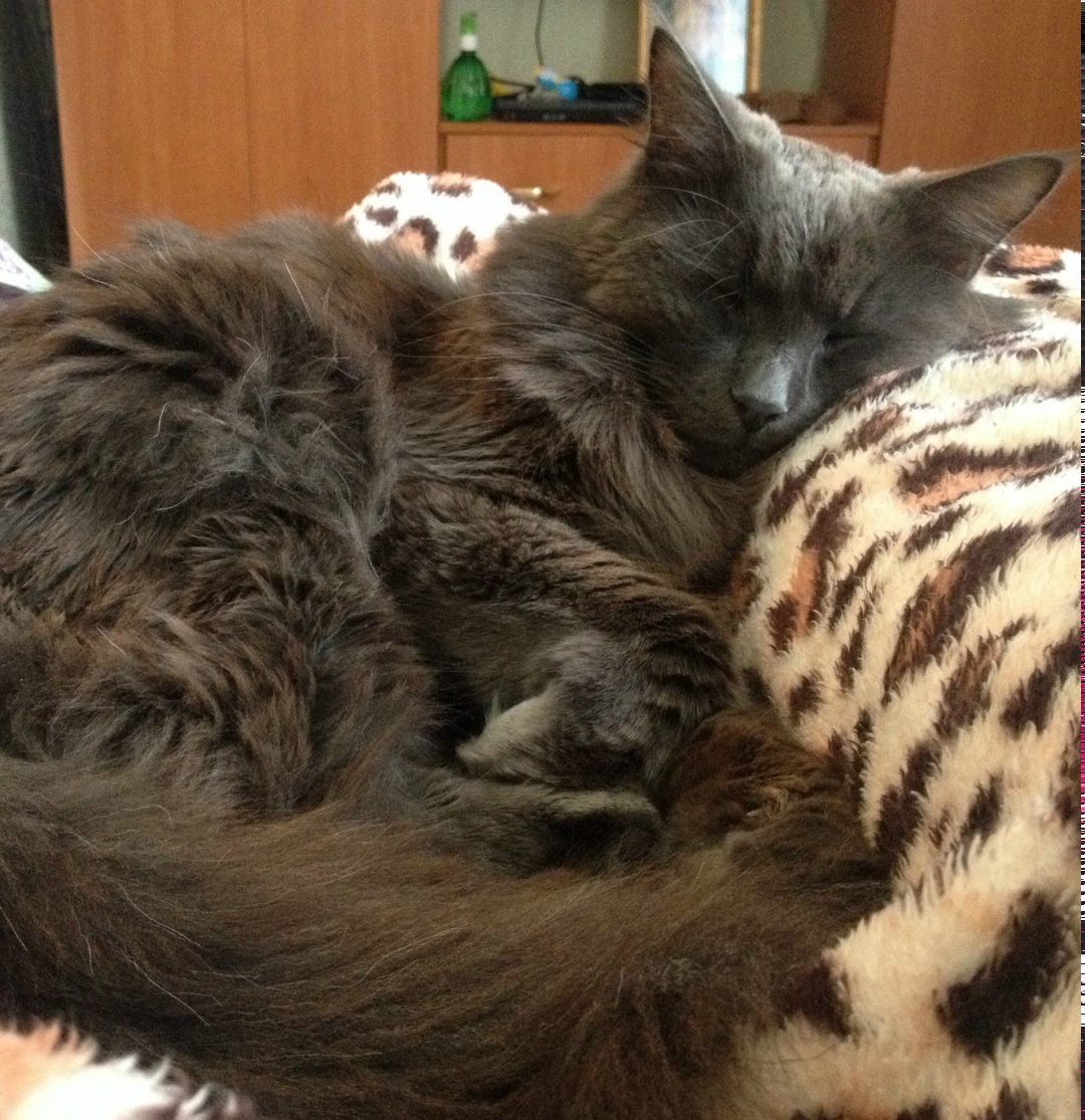 Описание: Большой серый кот, весит 11 кг, по размеру как средняя "собака".